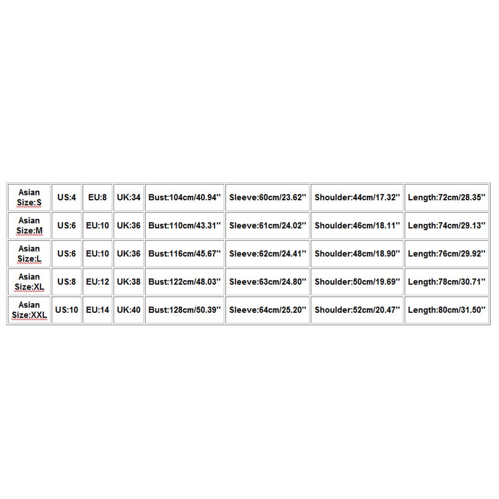 Азиатский размер США ЕС Великобритания Бюст Рукав Плечо Длина S 4. 8 34 104 см/40,94'' 60 см/23,62'' 44 см/17,32'' 72 см/28,35'' М 6 10 36 110 см/43,31'' 61 см/24,02'' 46 см/18,11'' 74 см/29,13'' L 6 10 36 116 см/45,67'' 62 см/24,41'' 48 см/18,90'' 76 см/29,92'' XL 8 12 38 122 см/48,03'' 63 см/24,80'' 50 см/19,69'' 78 см/30,71'' XXL 10 14 40 128 см/50,39'' 64 см/25,20'' 52 см/20,47'' 80 см/31,50''Давно хотела себе именно такие часы. В золотом корпусе с украшениями. Если сказать буквально в нескольких словах, то они просто... Читать отзыв полностью...