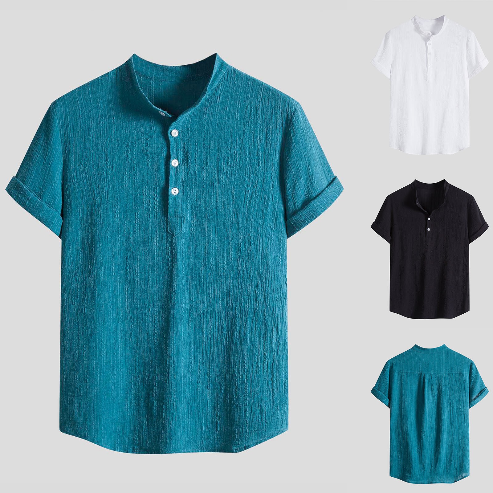 Мужские повседневные однотонные шорты Рубашка на пуговицах с воротником-стойкой