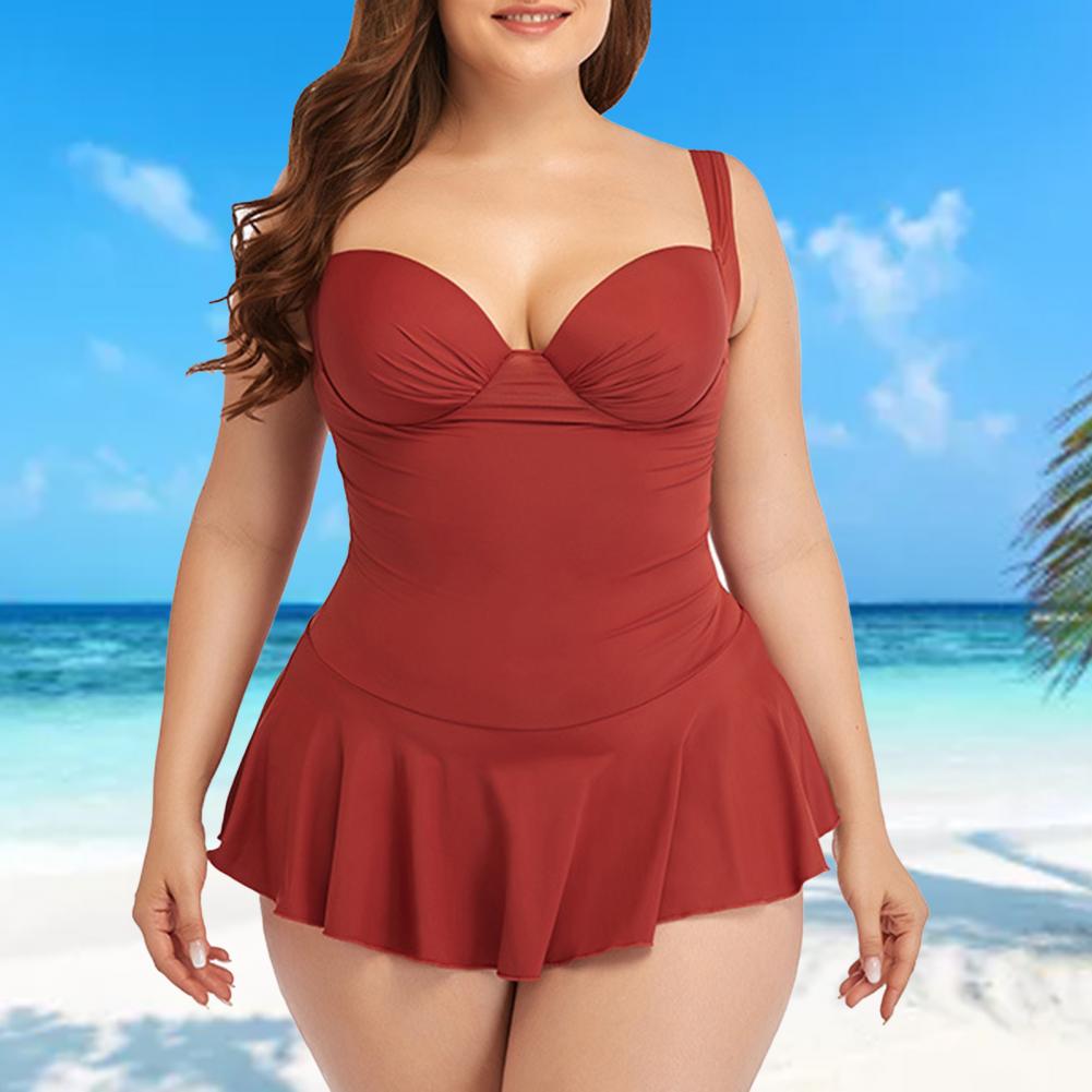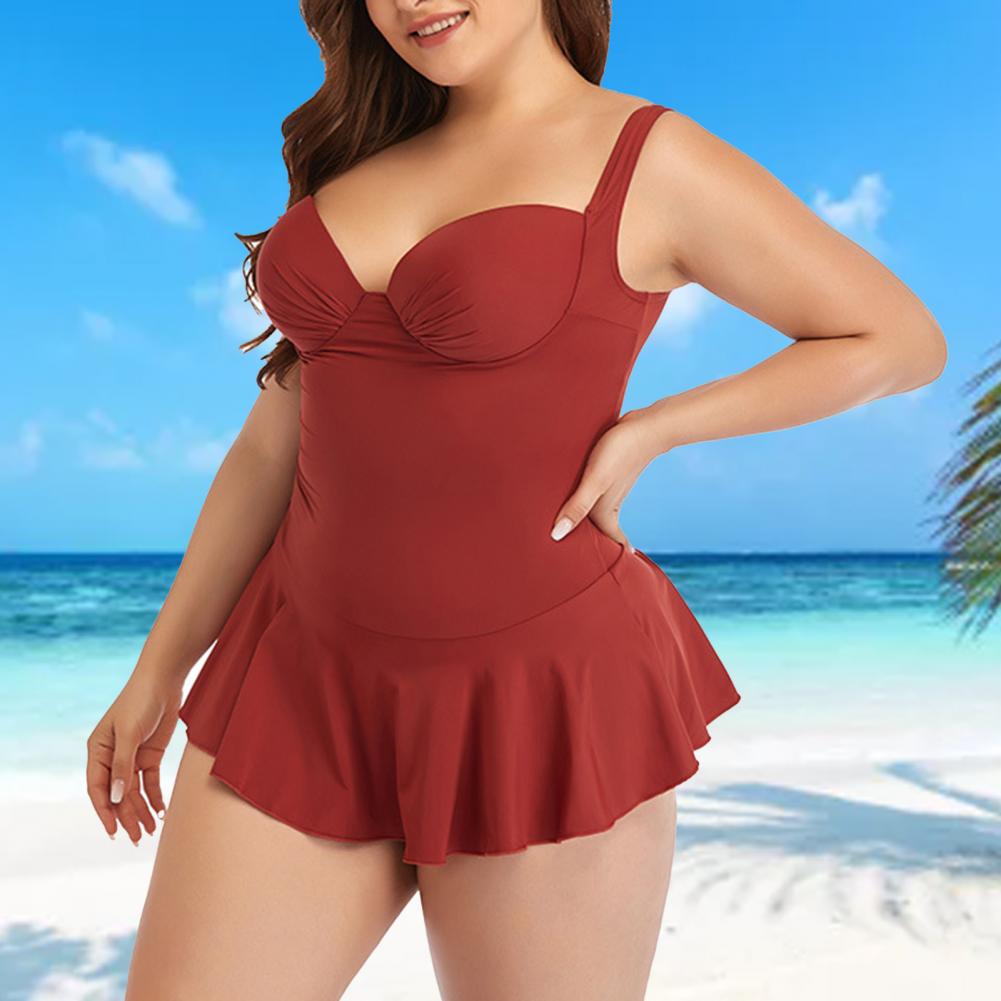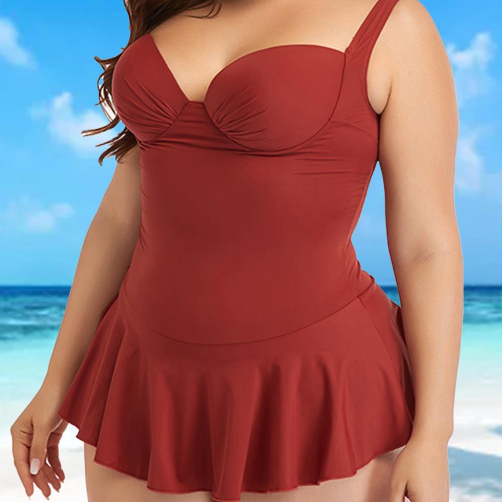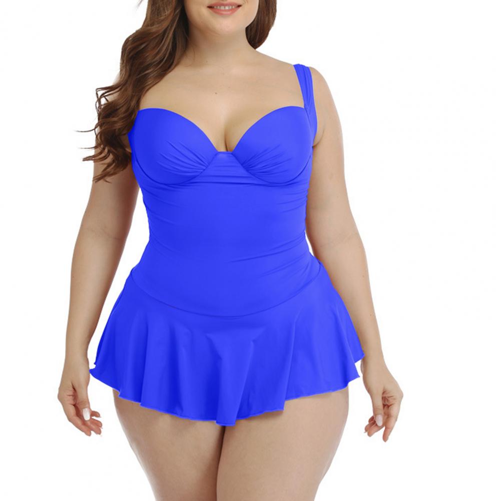 Цельное бикини с рюшами и свободным подолом может покрыть ваш толстый живот, что делает вас более стройной.