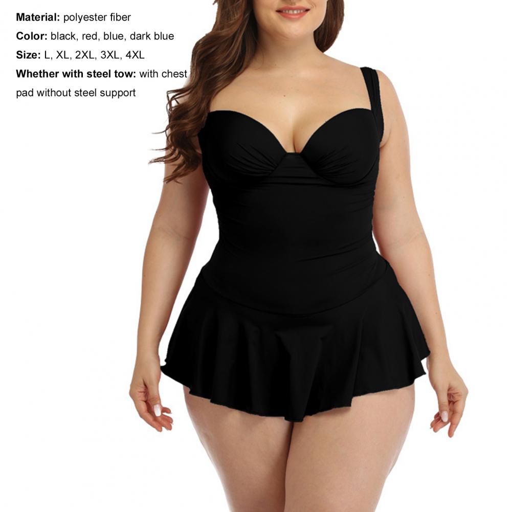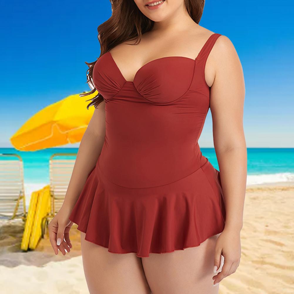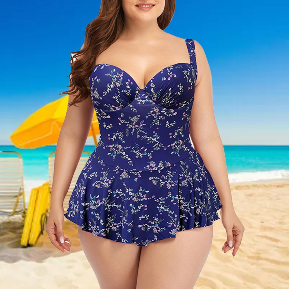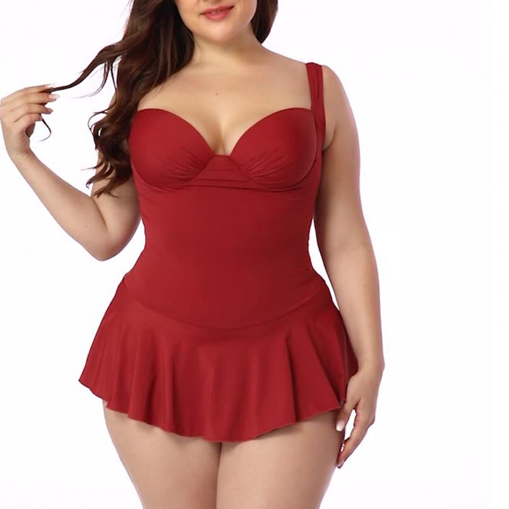 Цельное бикини с рюшами и свободным подолом может покрыть ваш толстый живот, что делает вас более стройной.