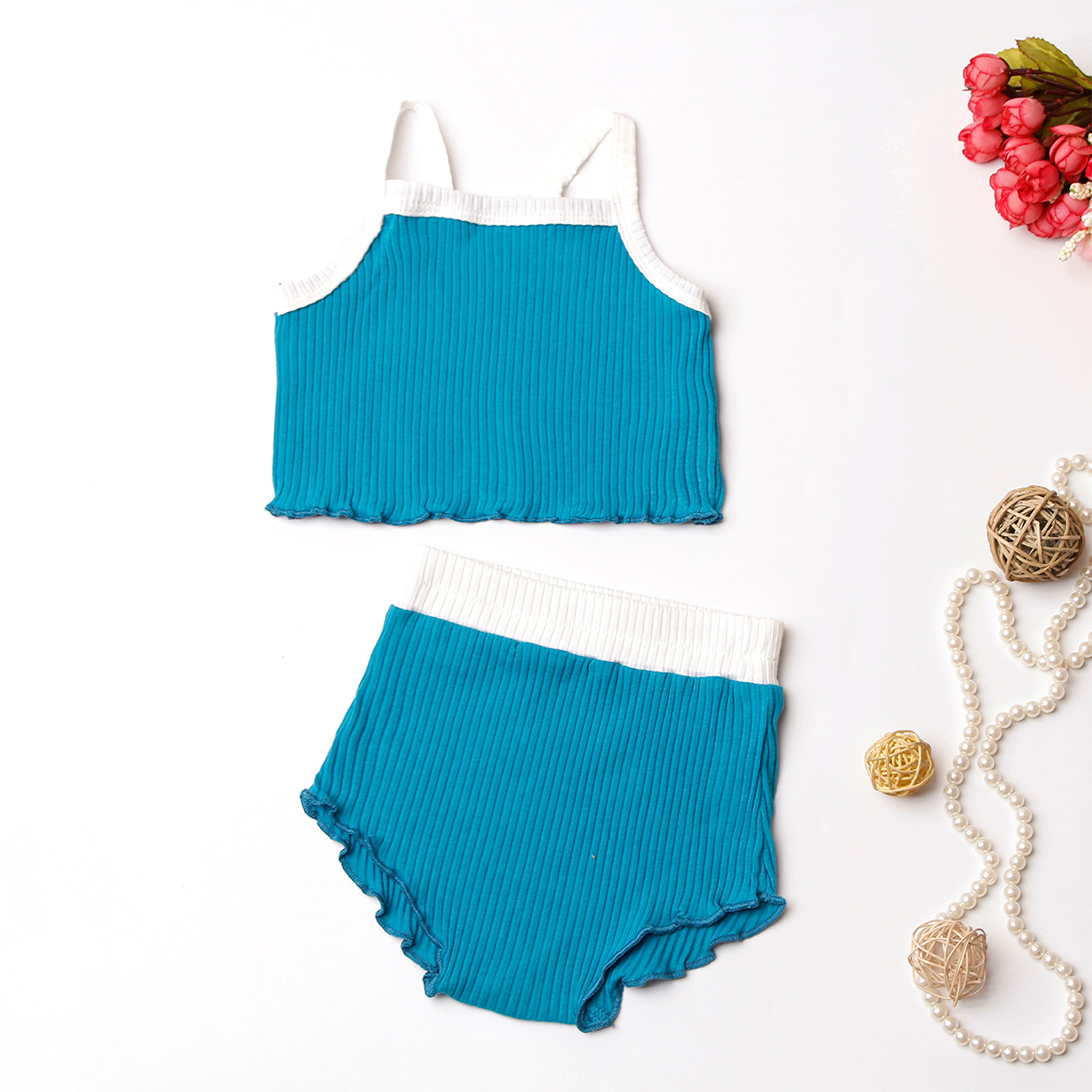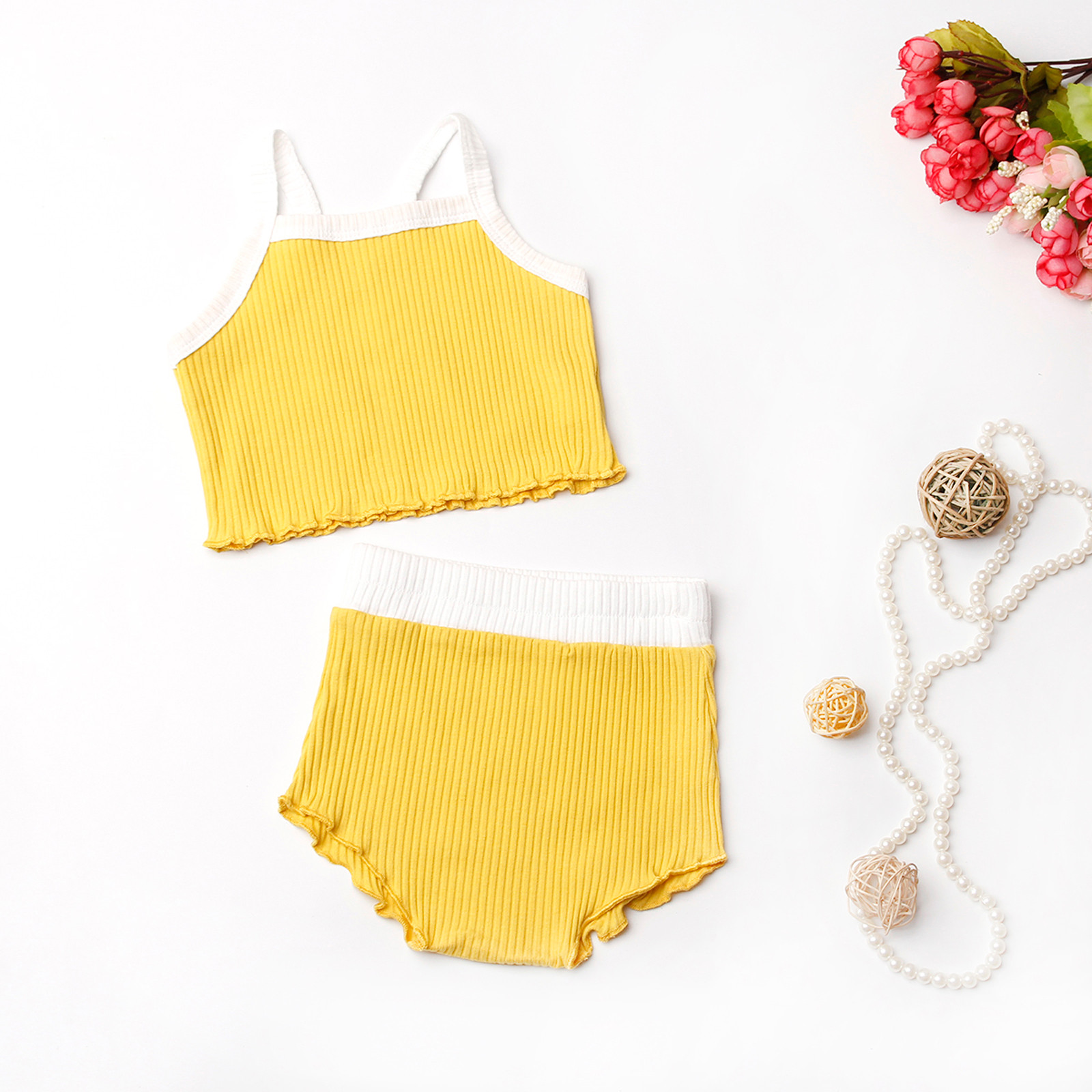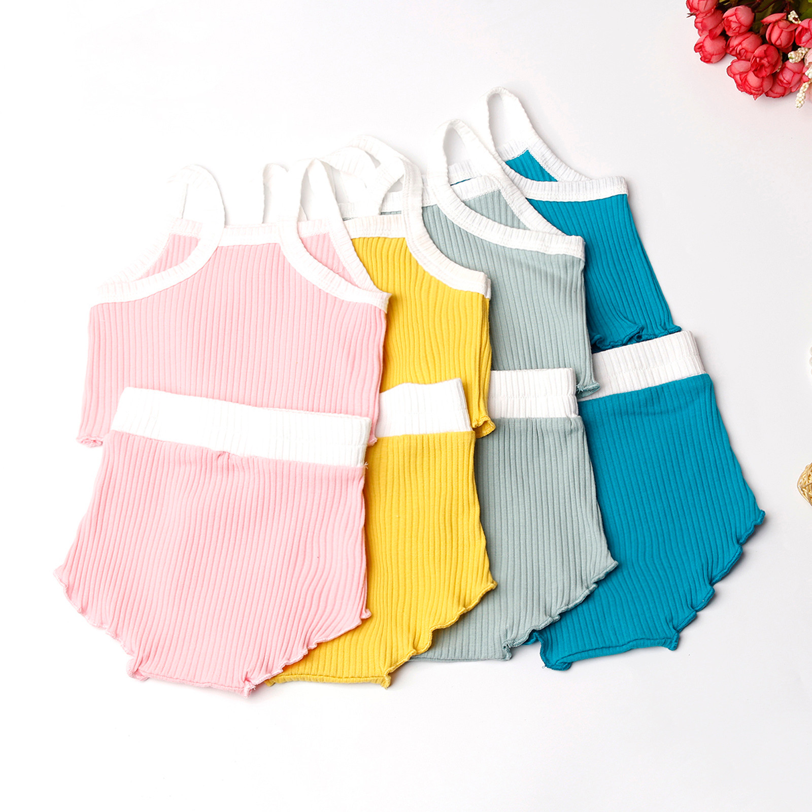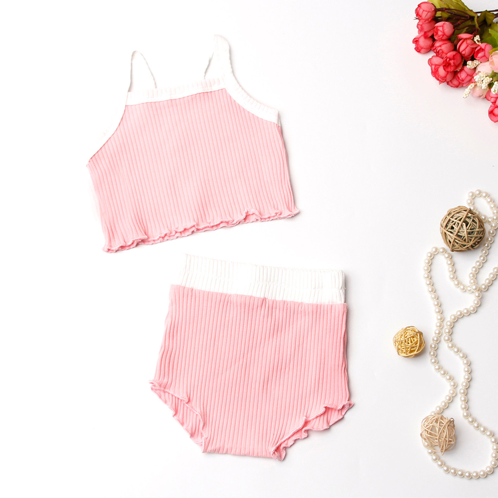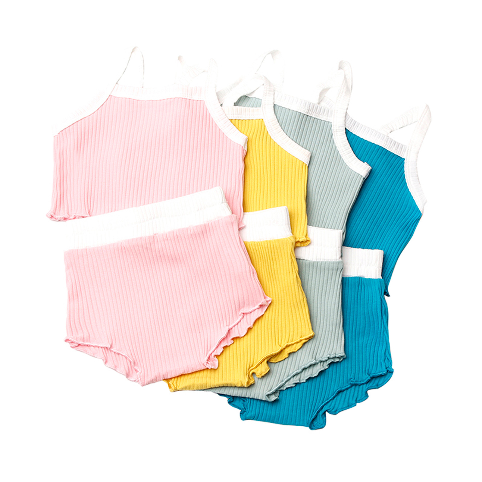 Комплекты с бретельками для девочек; Однотонные Короткие топы с подтяжками; Короткие штаны; Комплект одежды; Повседневные детские хлопковые комплекты; ensemble fille