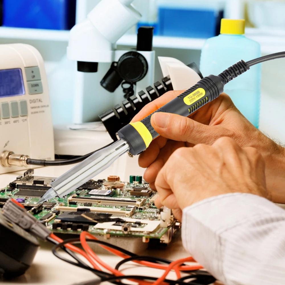 Благодаря утолщенному кабелю питания и усиленному и мягкому защитному покрытию на ручке Этот паяльник не скользкий, удобный для захвата, не нагревается и может эффективно защитить кабель от поломки, который безопасен для использования.