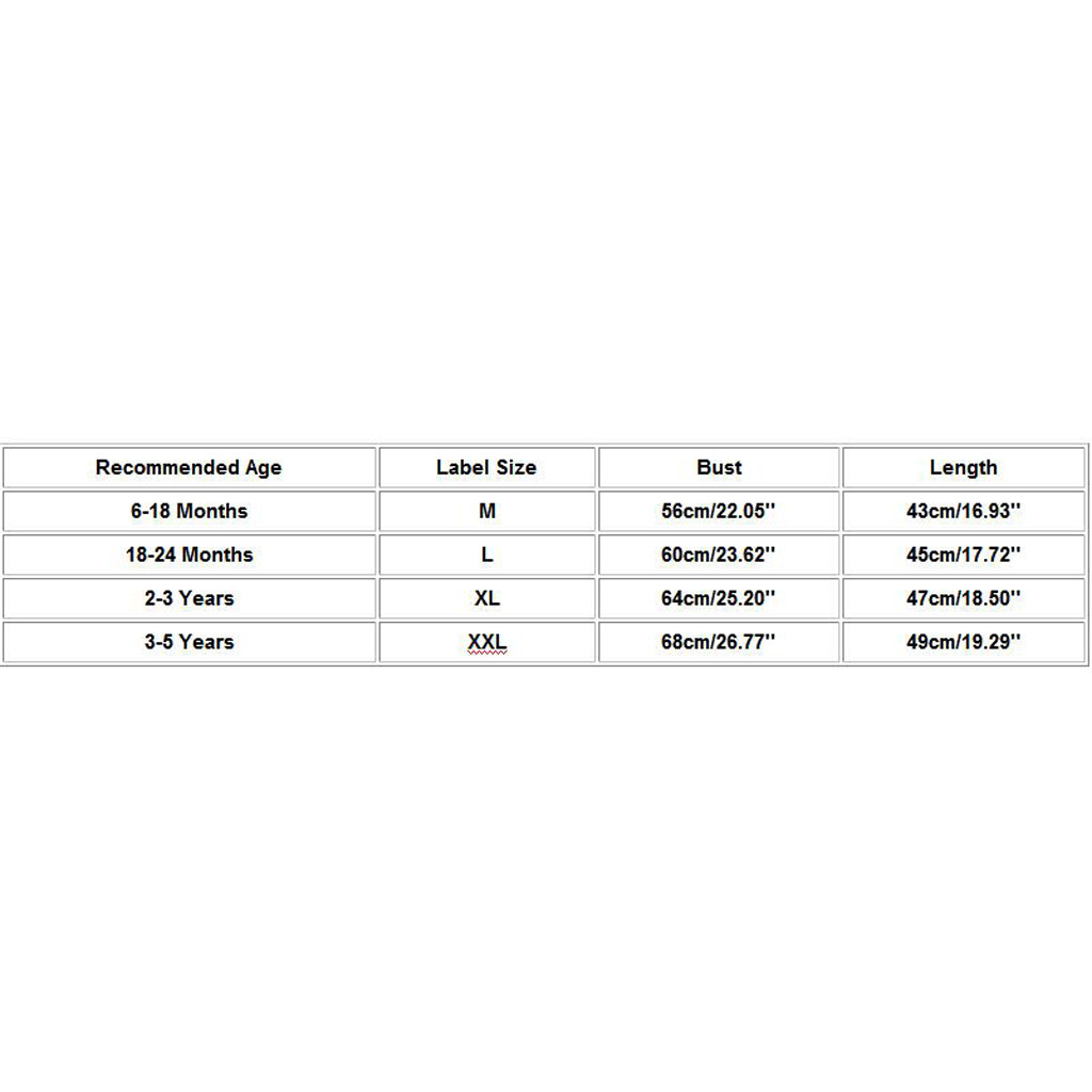 Рекомендуемый возраст Размер этикетки Бюст Длина 6-18 месяцев М 56 см/22,05'' 43 см/16,93'' 18-24 месяцев L 60 см/23,62'' 45 см/17,72'' От 2 до 3 лет XL 64 см/25,20'' 47 см/18,50'' От 3 до 5 лет XXL 68 см/26,77'' 49 см/19,29''