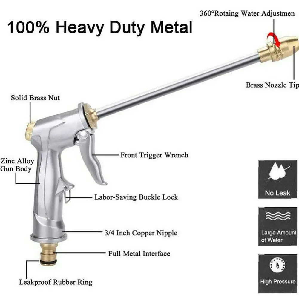 Каждый раз мойте свой автомобиль, ваша одежда всегда моется во время процесса стирки автомобиля, мы все знаем это. Но теперь, с этим удлиненным соплом, спроектированным вручную, возможно, вы сможете больше избежать намокания вашей одежды. Изготовлен из высококачественного сплава и меди, прочный и устойчивый к высоким температурам. Уникальный дизайн ручки позволяет вам легко захватывать его. Его можно использовать для полива растений и цветов, а также для мытья автомобилей, мотоциклов, окон, тротуаров и так далее.