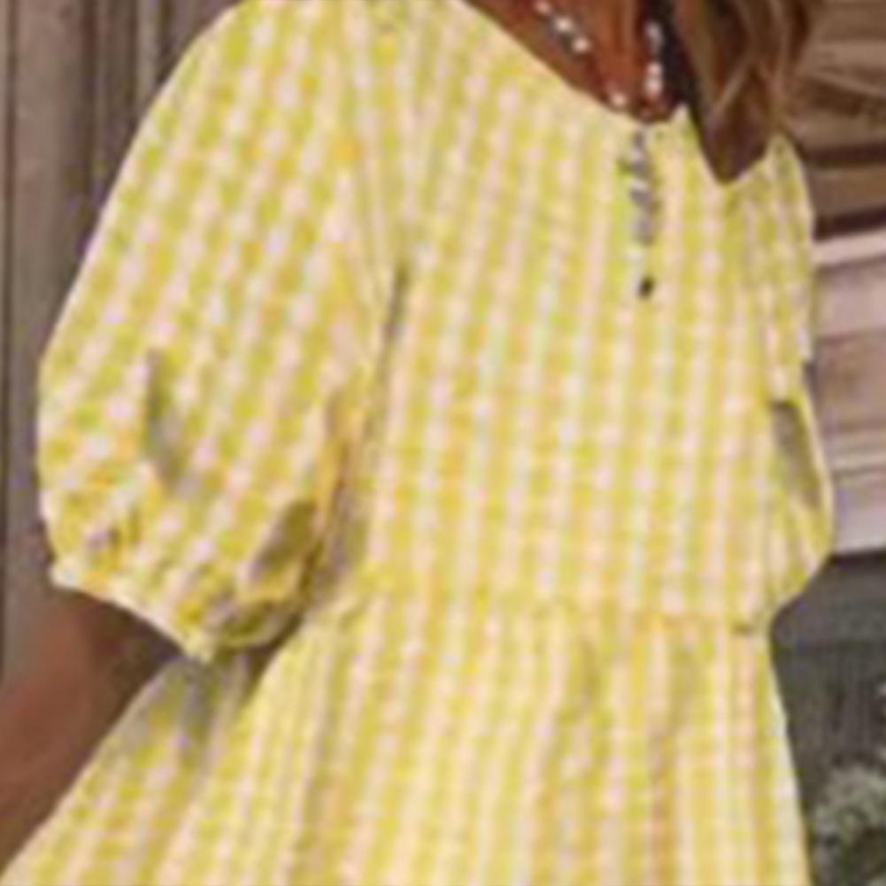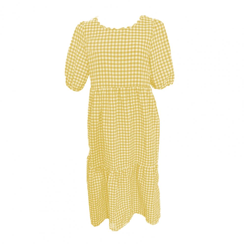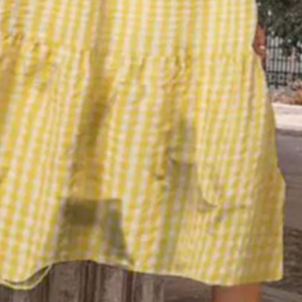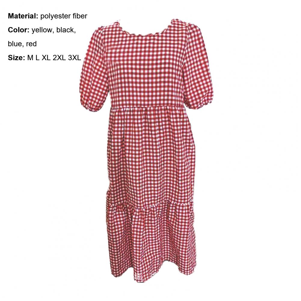 Женское платье, клетчатая Лоскутная летняя юбка с пышными рукавами и круглым вырезом для пляжа
