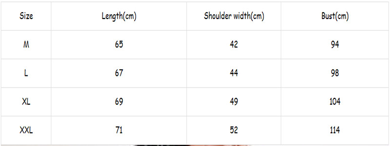 Примечание: 1. Пожалуйста, строго следуйте таблице размеров, чтобы выбрать размер. Не выбирайте напрямую в соответствии с вашими привычками. 2. Все еще не уверены в размере? Мы бы хотели посоветовать, основываясь на ваших измерениях груди, талии и бедер. 3. Размер может отличаться на 2-3 см из-за ручного измерения. Пожалуйста, обратите внимание при измерении. 4. Предложение ручной стирки холодной водой. Это может помочь изделиям сохранить свою форму.
