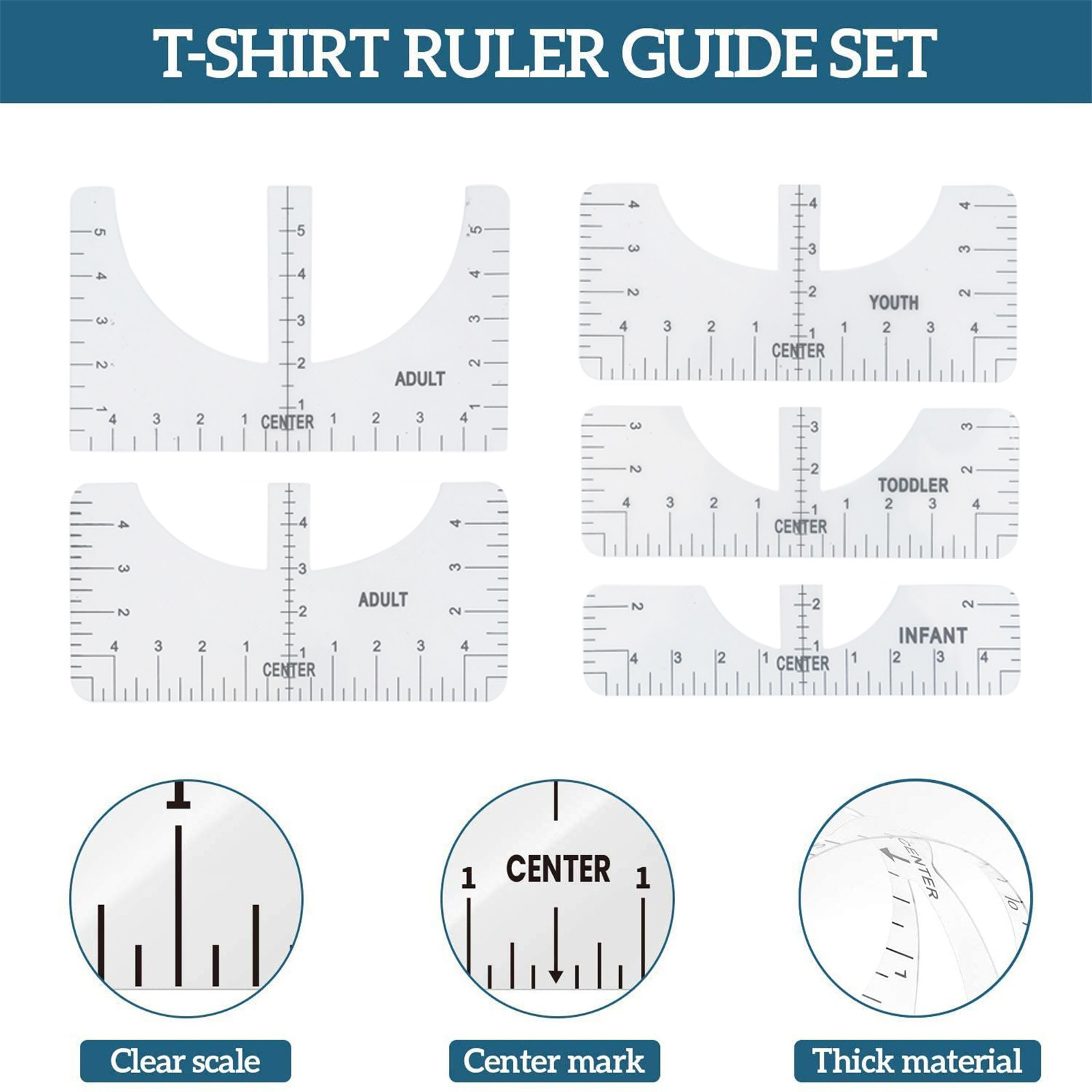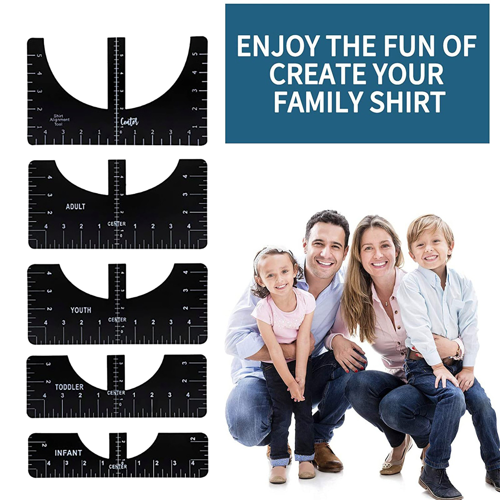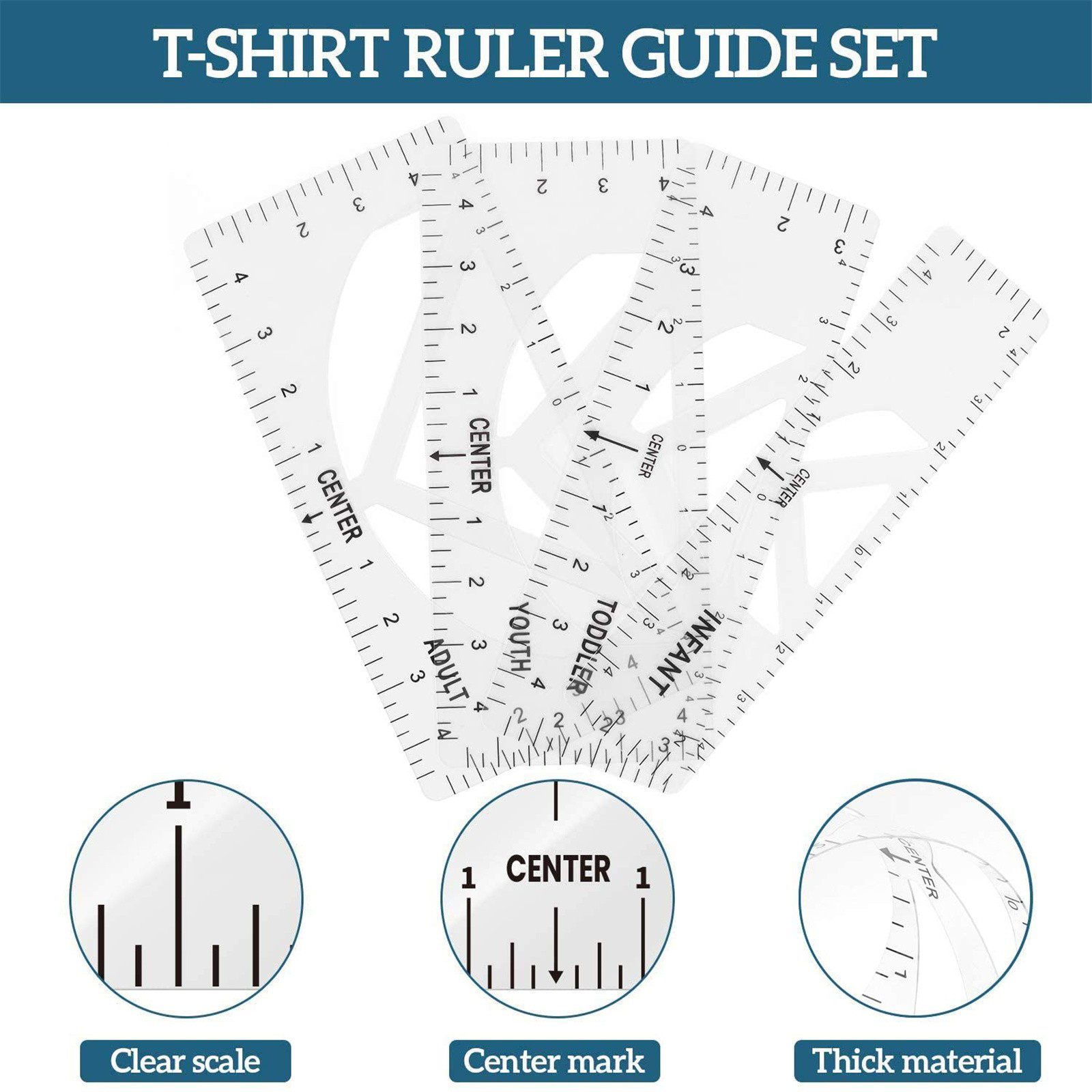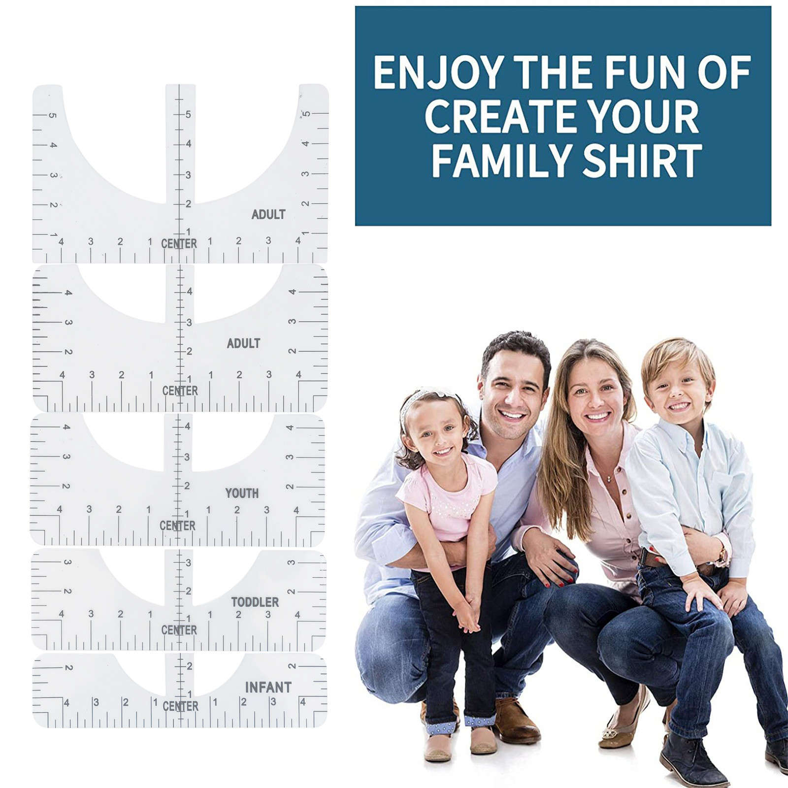 What you can get: Four sizes of sewing rulers, including adults, young children and babies, can meet the clothing needs of the whole family. It is a great craft tool to make your design and measurement more accurate and comprehensive. Easy to use: T-shirt ruler is easy to use. Just align the ruler with the collar of the T-shirt and center the design before embossing. This applies to anyone in the T-shirt business. Help you align left, center or right, and save the time of designing the center. High quality: The middle ruler is made of high-quality PVC, so there is no need to worry about the pvc ruler broken! Can be twisted at will, can be reused DIY T-shirt design: T-shirt alignment tool will help align the design with the shirt and help to align the print perfectly every time! Never worry about things not being centered anymore!High satisfaction: 100% satisfied-if you are not satisfied with our sewing ruler for any reason, please feel free to contact us. We will take full responsibility and responsibility for the quality of our products, and do our best to solve your problems quickly and efficiently!