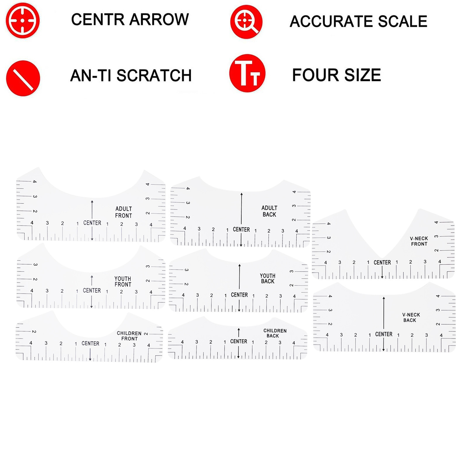 Product Information:Package Include:4Pc T-Shirt Alignment Ruler