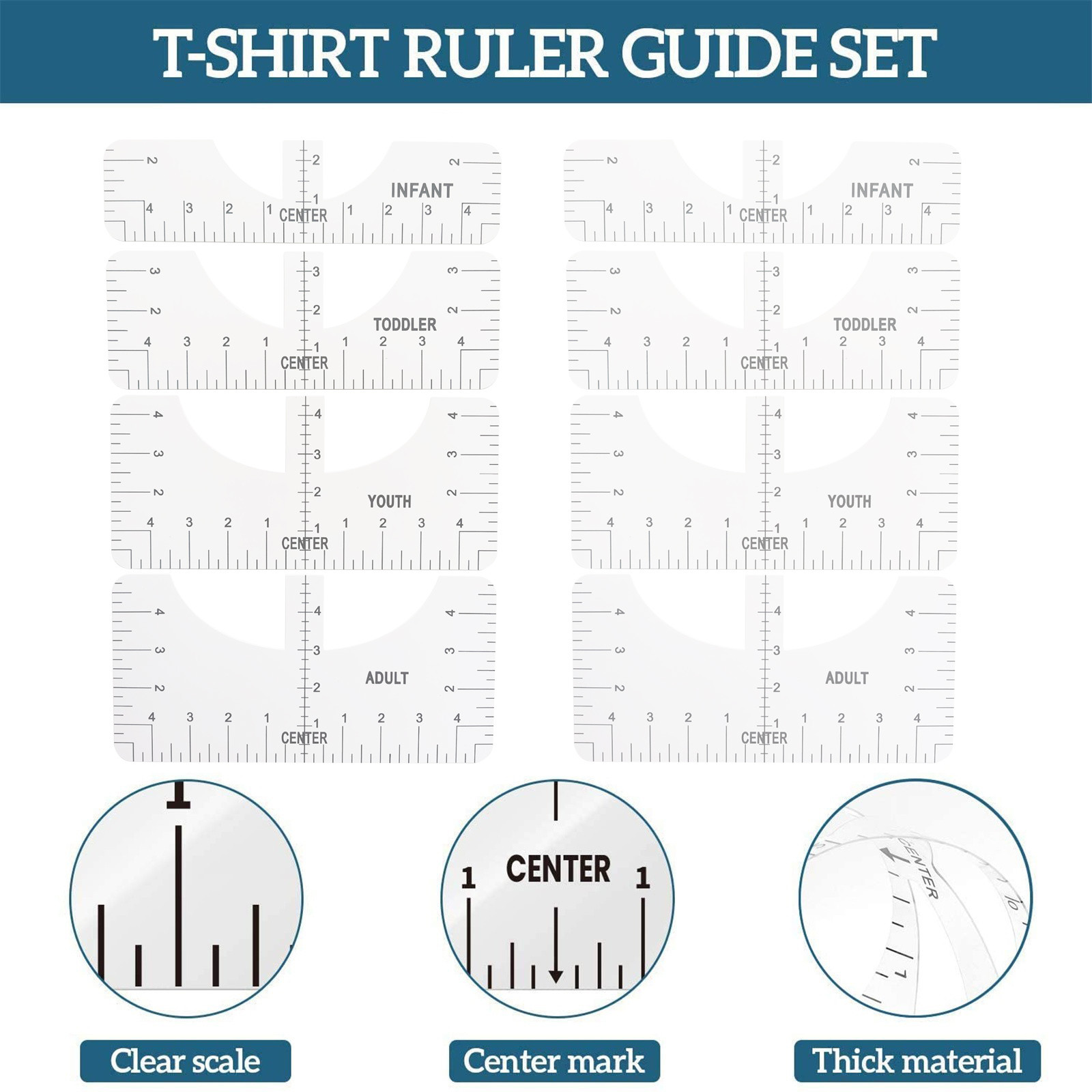 Product Information:Package Include:8Pc T-Shirt Alignment Ruler