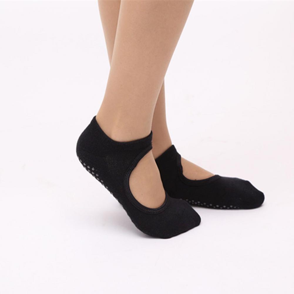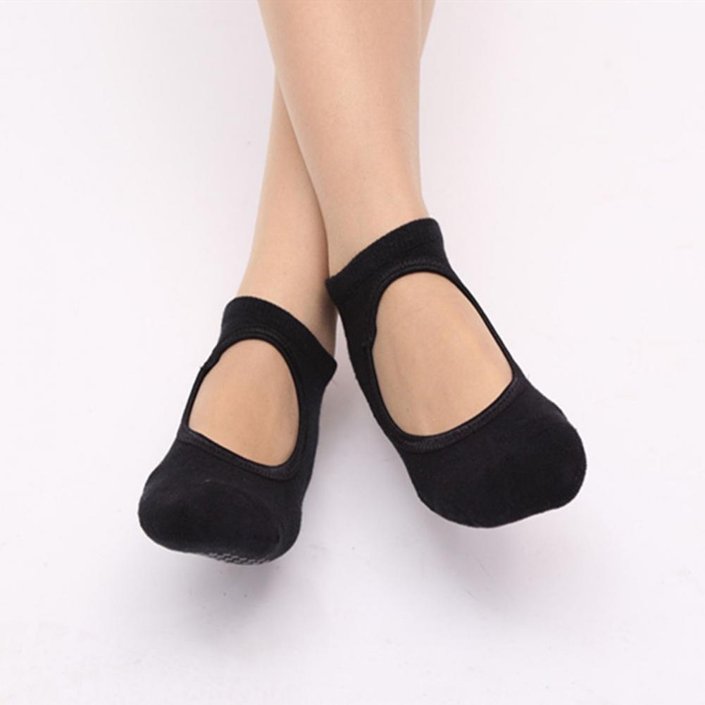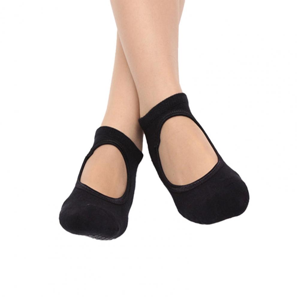 Черные 1 пара мягких и дышащих легкочистящих носков для йоги, невидимые Нескользящие хлопковые балетные Топ для занятия танцами Пилатес, женские носки для тренировок