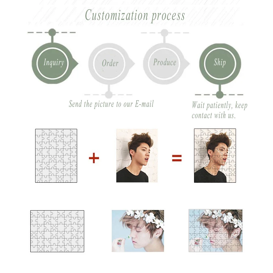 Система чата AliExpress сжимает ваши изображения, поэтому, пожалуйста, отправьте оригинальную картинку вашей фотографии на нашу электронную почту. Адрес электронной почты: 137422232@qq.com (если у вас есть заказ, пожалуйста, сообщите мне свой номер заказа по электронной почте. Если вы все еще не сделали заказ, пожалуйста, сообщите мне Размер пазла, который вы хотите, мы проверим, подходит ли ваша фотография.)