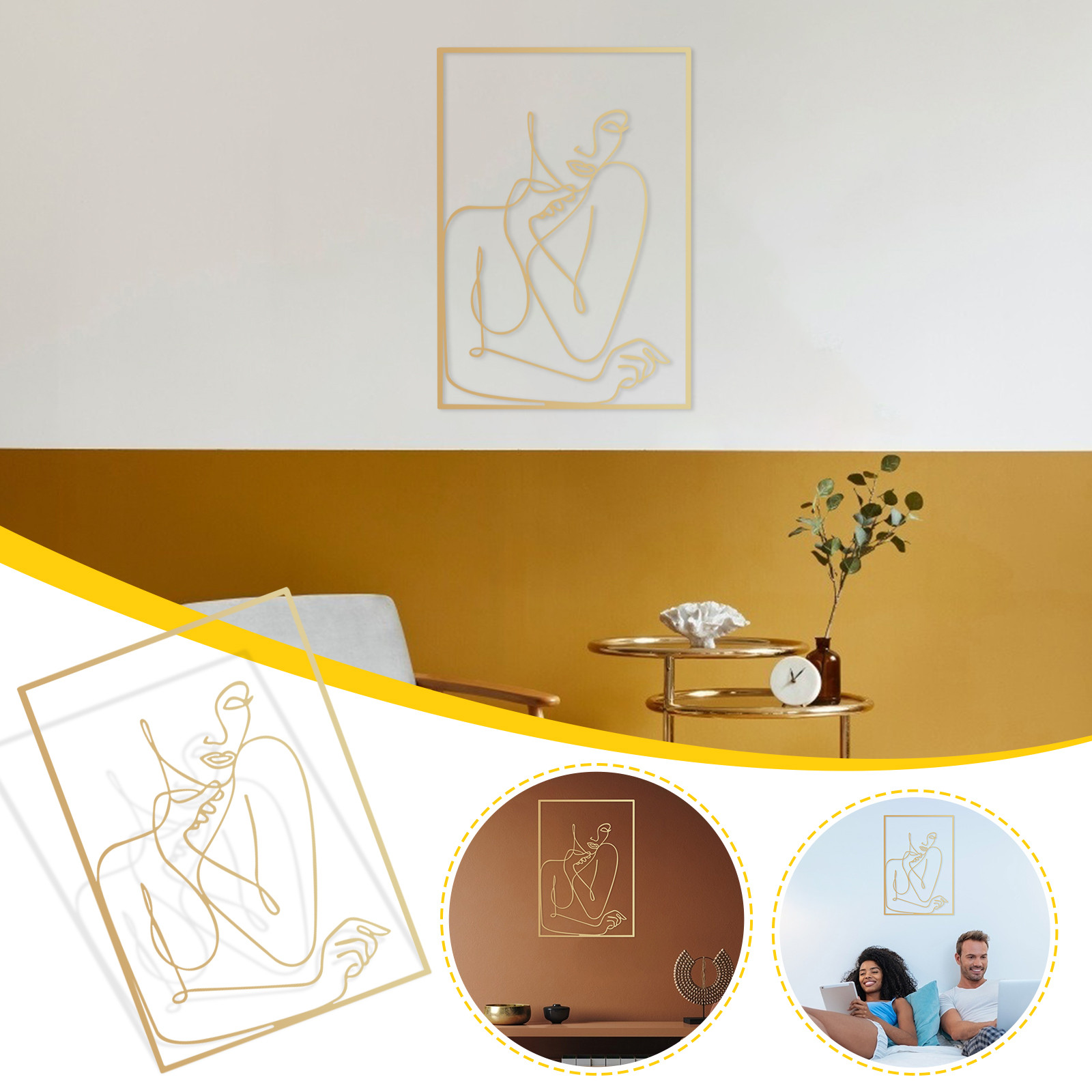 Минималистичный дизайн-наши минималистические Настенные рисунки основаны на золотых простых линиях, чтобы очертить женское тело, классическое и элегантное, подходит для освещения общего стиля вашего дома.