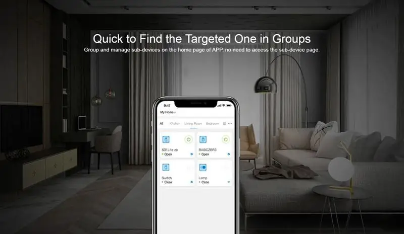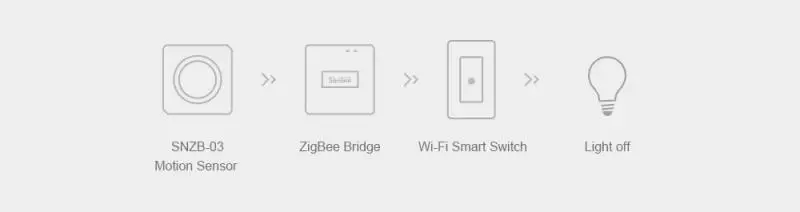 Работает с датчиком движения witch SONOFF SNZB-03, чтобы ваш светильник гостиной автоматически включался, когда вы входите в гостиную вечером, без темноты перед вами.