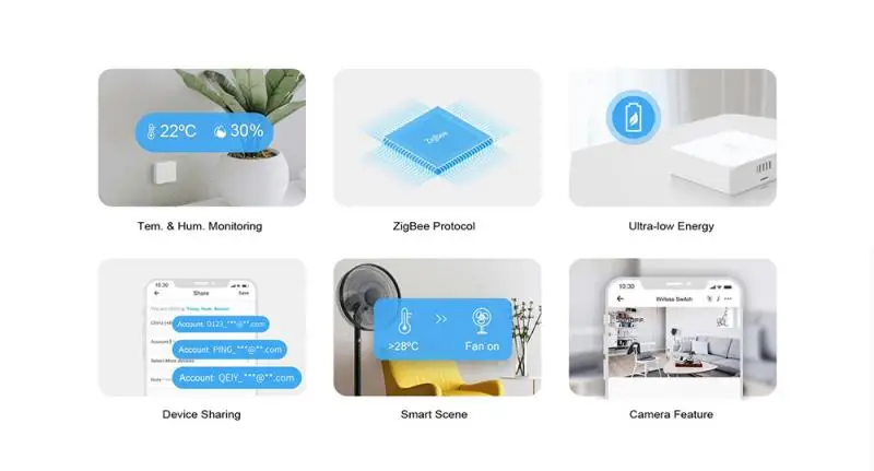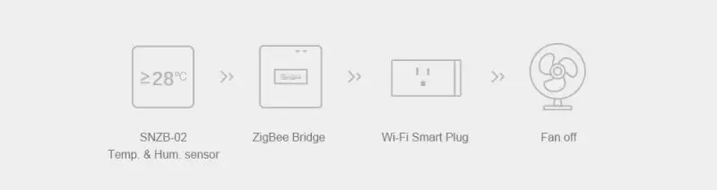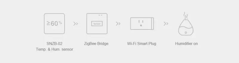Подключите мост к SONOFF SNZB-02 Tem.& Hum. Датчик для определения температуры в реальном времени и влажности вашего дома, затем вы можете включить/выключить вентилятор или увлажнение, чтобы изменить комфортный уровень.