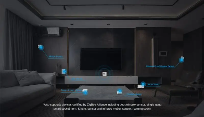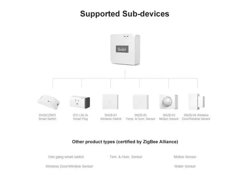 Мост поддерживает добавление устройств Zigbee, выпущенных SONOFF, таких как S31 Lite Zigbee smart plug и BASICZBR3 DIY smart switch, что делает ваш дом умнее.