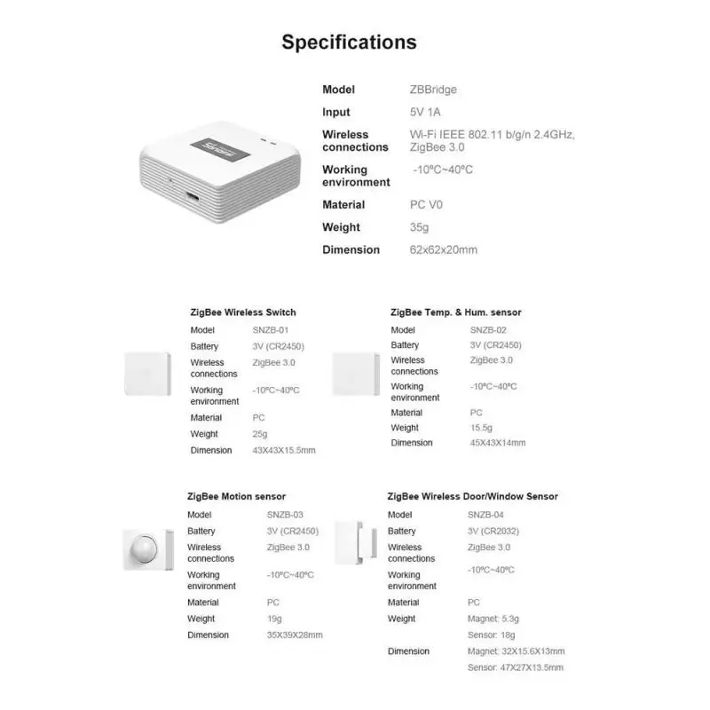 1.SONOFF SNZB-01Беспроводной коммутатор Zigbee-это мини-и изысканный беспроводной умный коммутатор ZigBee, отвечающий на мост SONOFF ZigBee, который позволяет достичь цели связи между устройствами ZigBee (SONOFF BASICZBR3 DIY smart Switch и S31 Lite zb умная вилка) И Wi-Fi устройств.