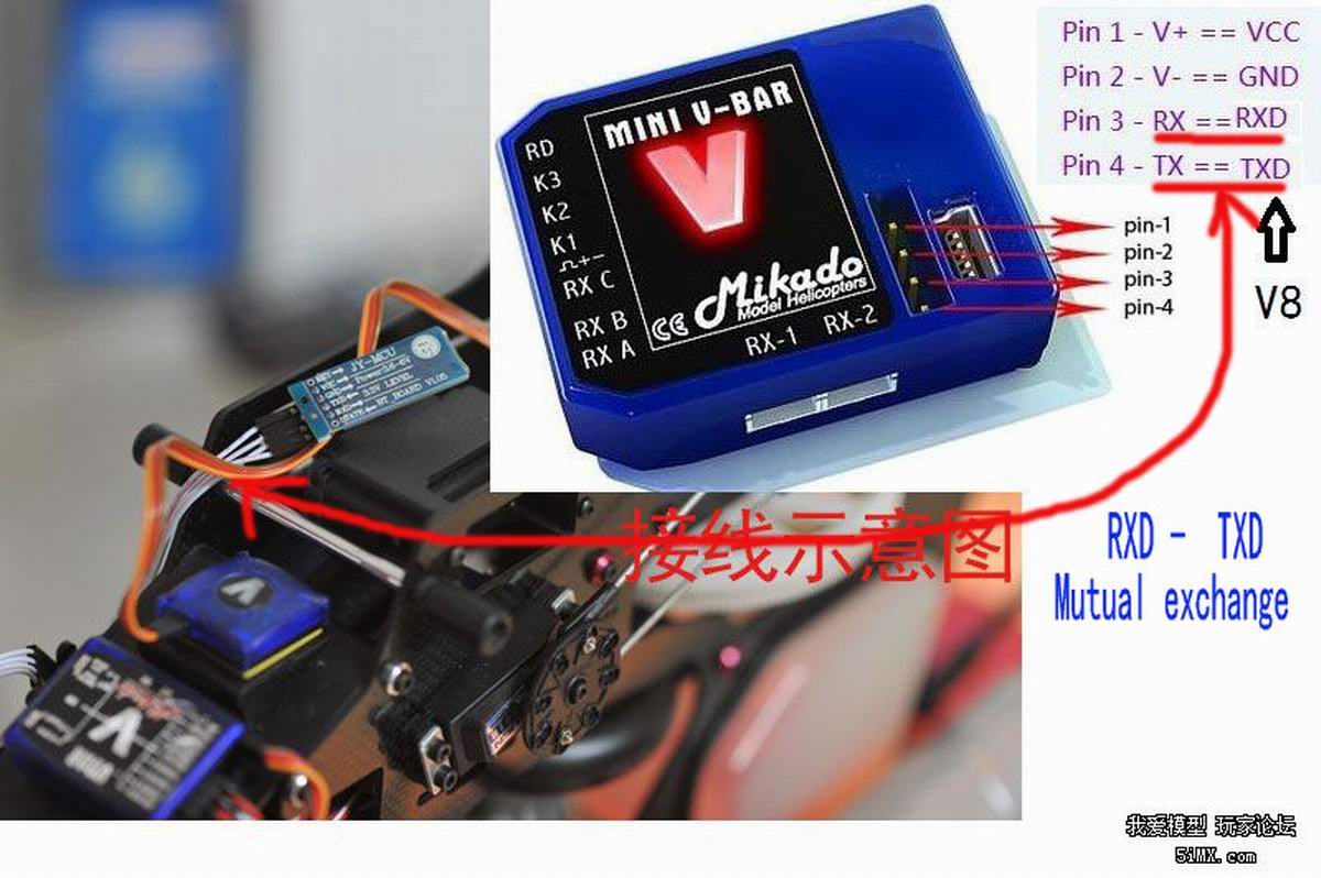 Пользователь может подключиться 3,3 Для 5VDC и подключение TX и RX к вашим контролем ввода-вывода (общий 3,3 до 5V цифрового ввода-вывода MCU или arduino ввода-вывода в порядке, или общего TLL ввода/вывода)