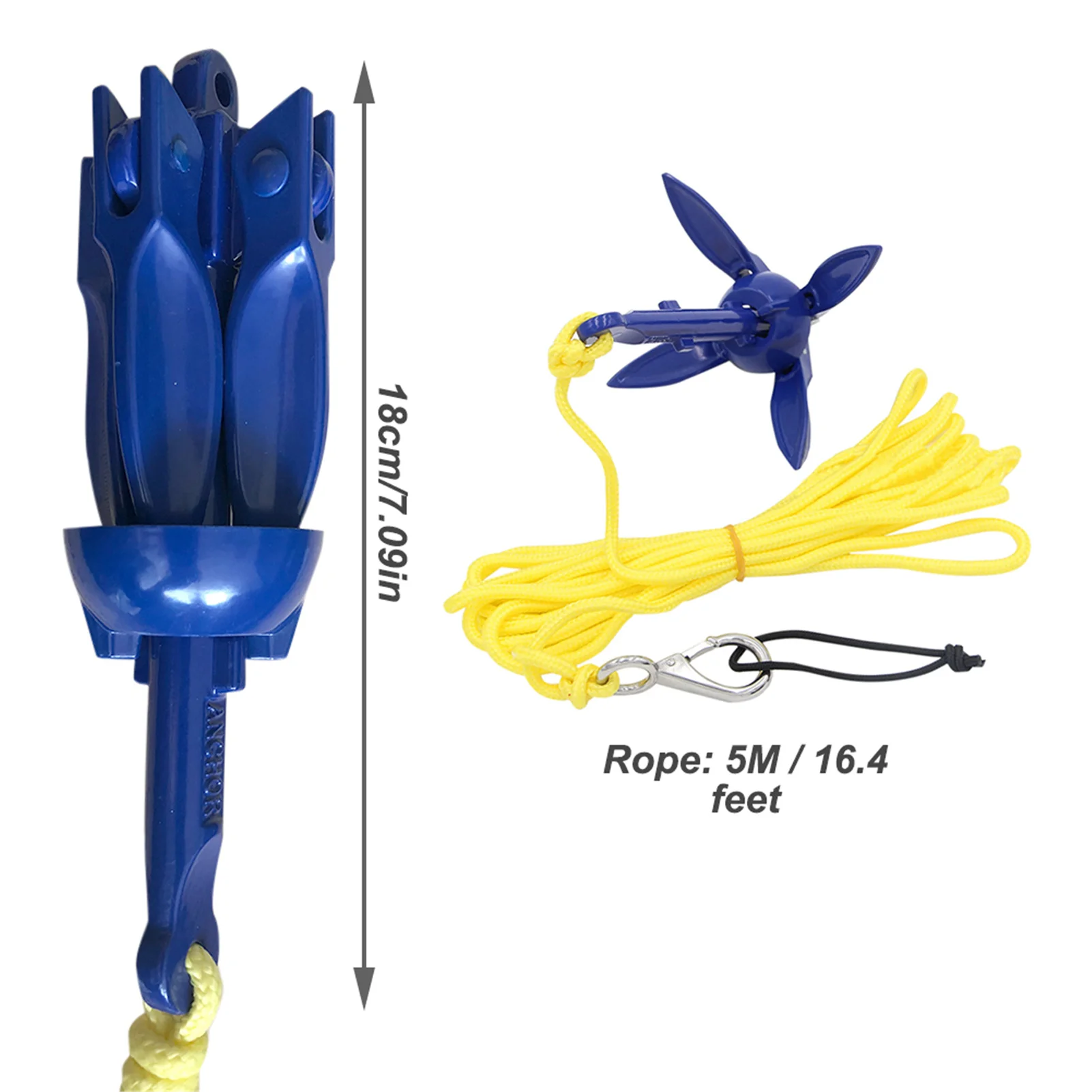 Включает в себя компактный складной якорь с 5 м морской веревкой.