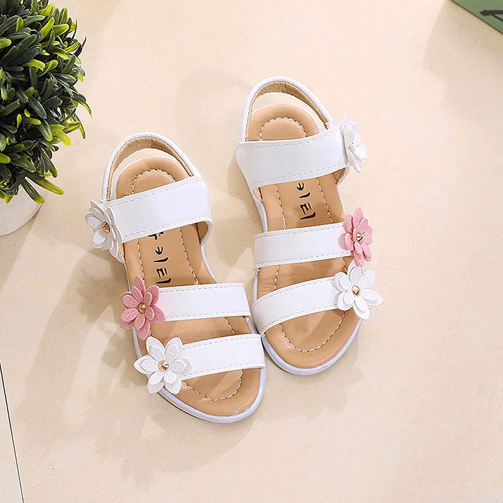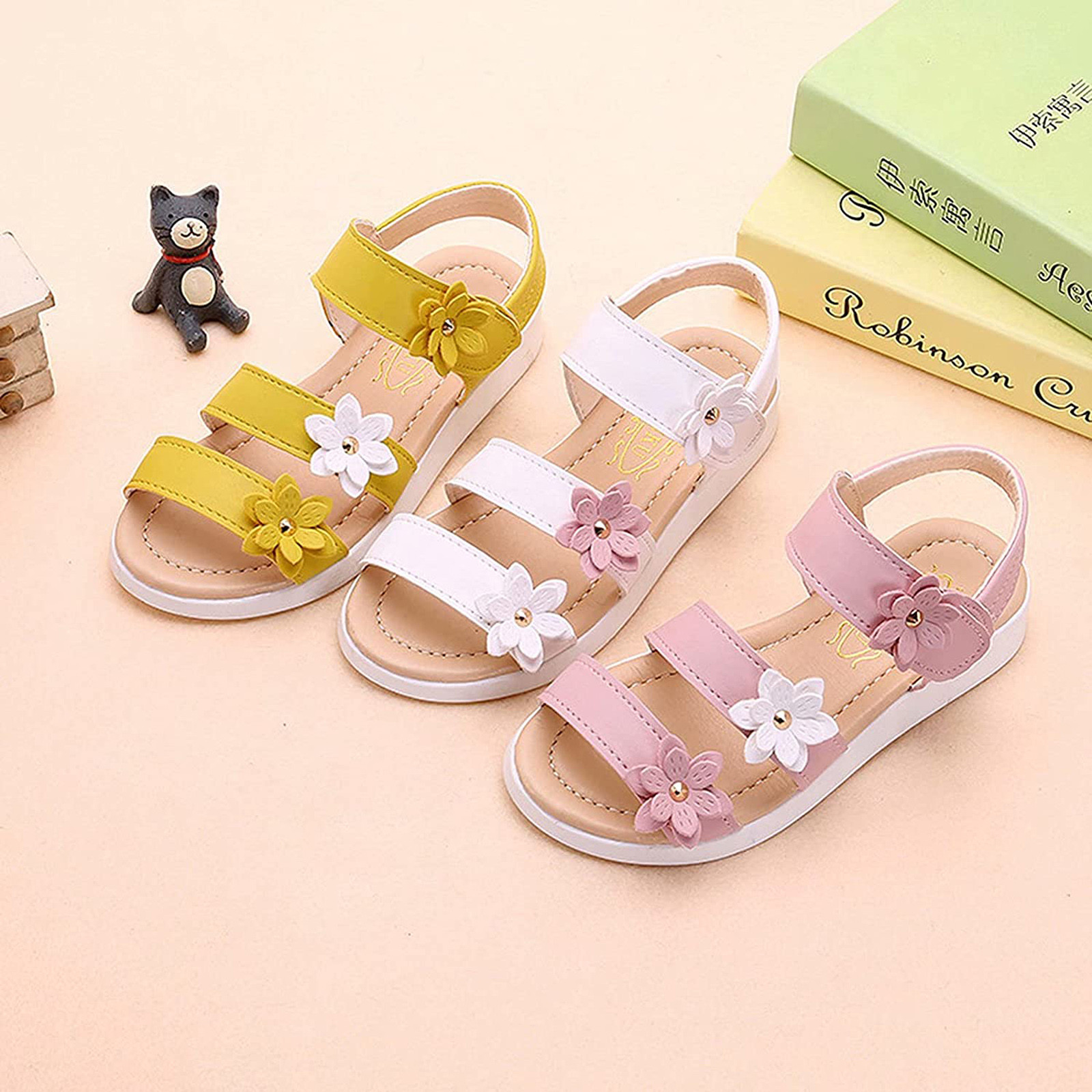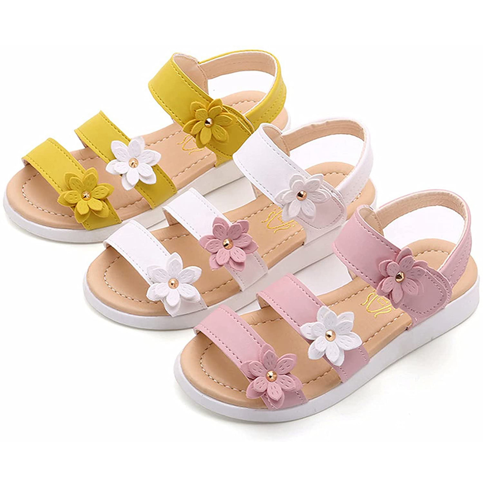 Летние сандалии с цветочным рисунком для маленьких девочек; Пляжная обувь с цветочным узором для девочек; Милая обувь на плоской подошве