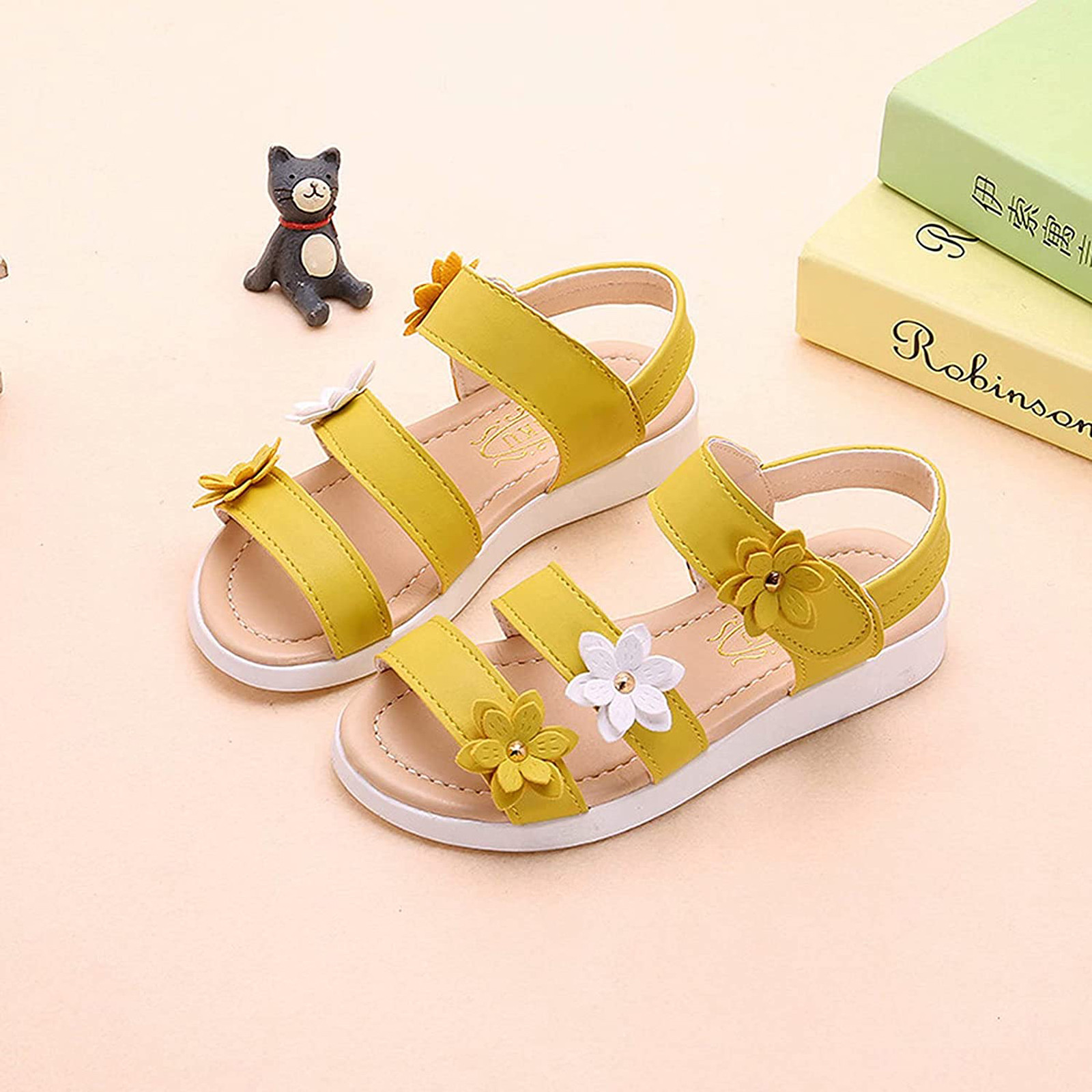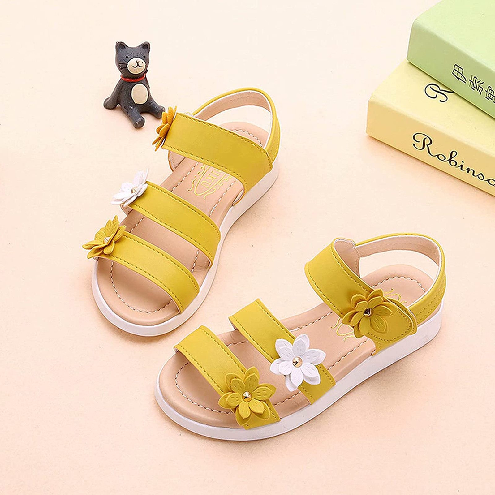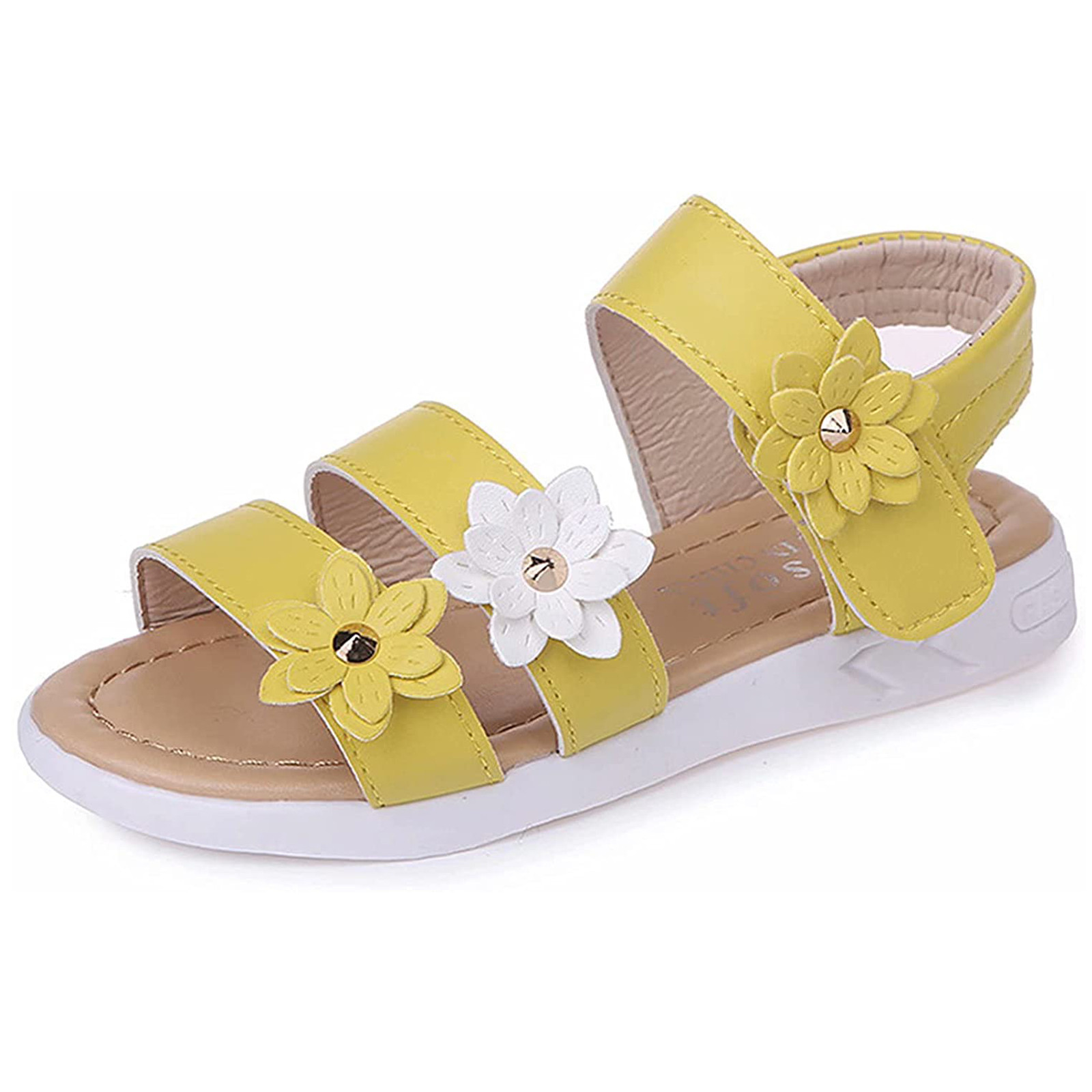 Летние сандалии с цветочным рисунком для маленьких девочек; Пляжная обувь с цветочным узором для девочек; Милая обувь на плоской подошве