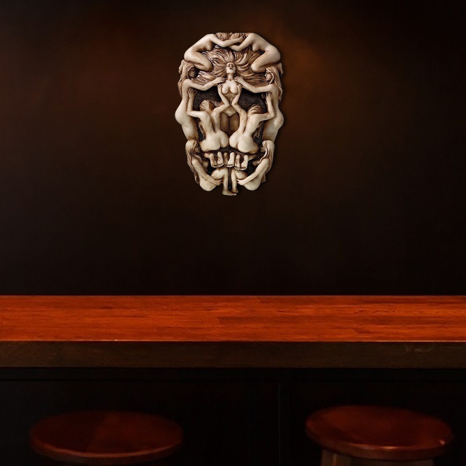 Эта изысканная скульптура с изображением скелета придает уникальный цвет вашему украшению на Хэллоуин, мужской пещере или кинокомнате.