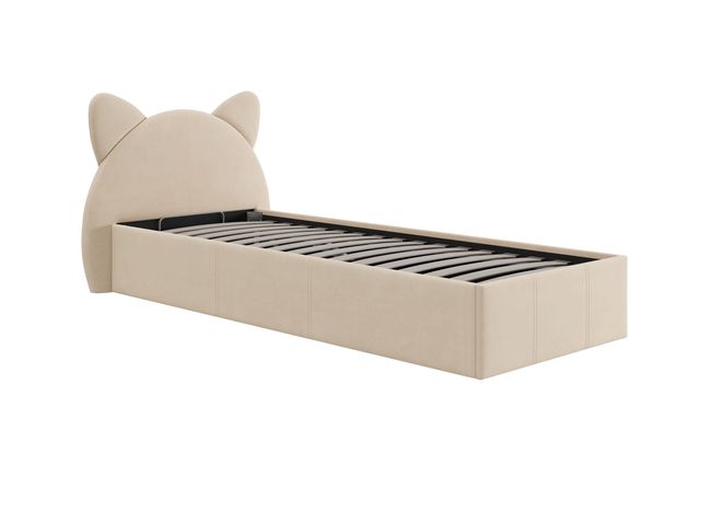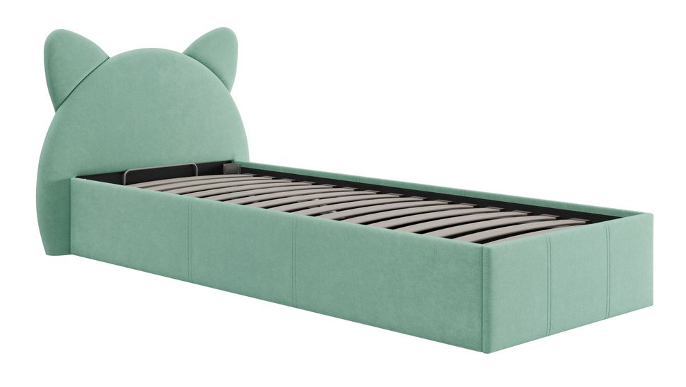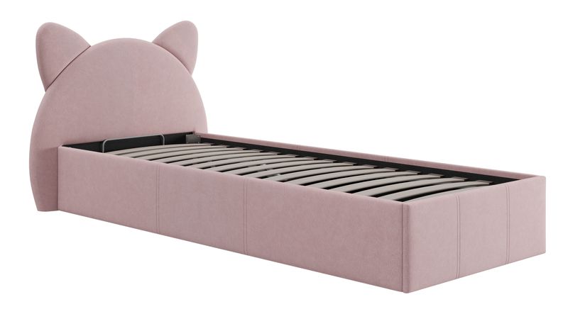 Кровать Китти с оригинальным фигурным изголовьем создаст в детской атмосферу радости и гостеприимства. Мягкие накладки-ушки добавят уюта, а цвет – праздничного настроения. Гармонично сочетается ткани с разными материалами открывает простор для дизайнерских экспериментов. Мягкие накладки в изголовье и скругленные детали делают кровать Китти безопасной, а вместительный короб для хранения – функциональной.Товар под заказ.