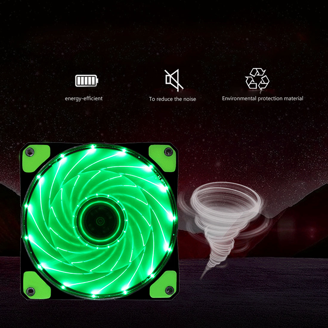 100% новый товар высокого качества. 4pin + 3pin Ультра тихий светодиодный чехол вентилятор. С 15 светодиодный подсветкой. Подключение к источнику питания или материнской плате. Антивибрационные резиновые прокладки на всех четырех углах удерживают вентилятор в очень бесшумном состоянии. Он обеспечивает невероятное охлаждение для увеличения долговечности и стабильности системы и компонентов. Охлаждающий вентилятор для настольного компьютера чехол и кулер ЦП.Свойства продукта:>