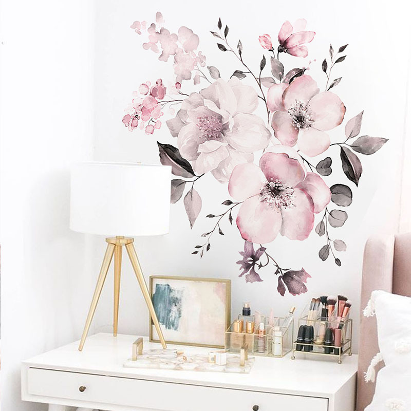 Розовые белые Акварельные Цветы пиона, настенные наклейки, Декор для дома