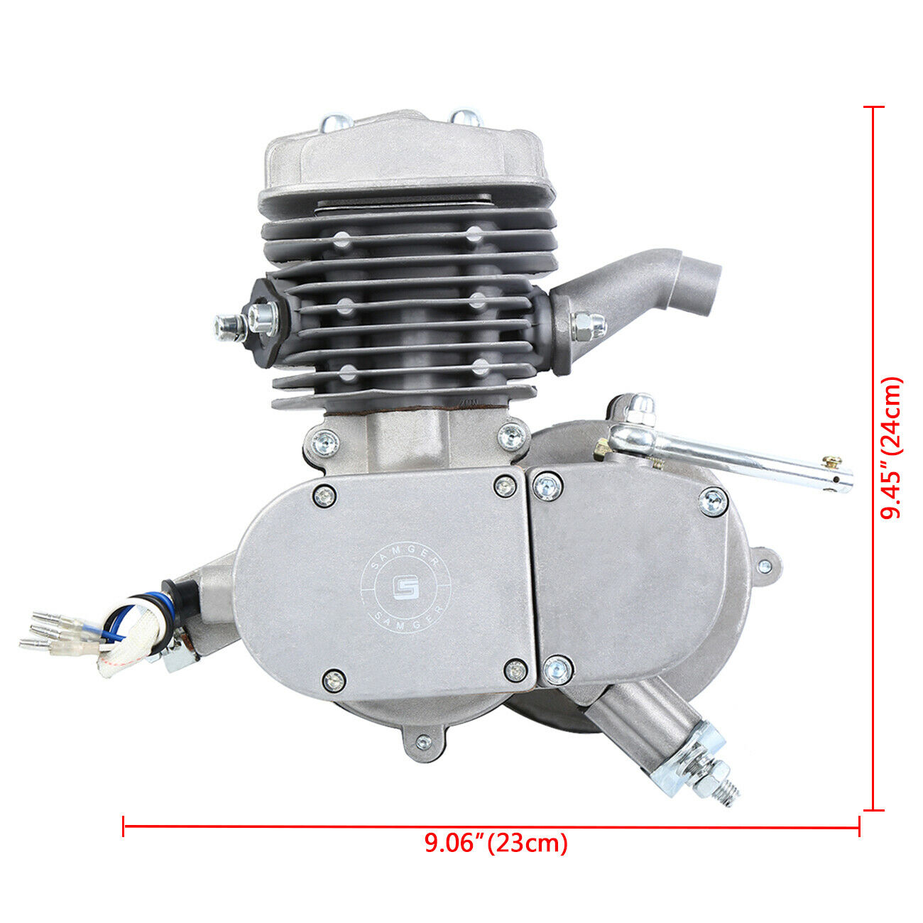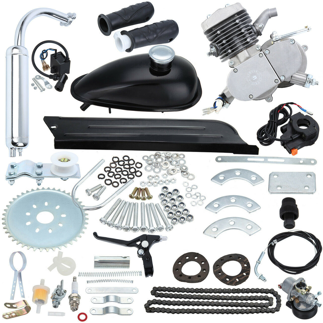Этот черный бензиновый газовый комплект 50cc используется для обновления обычного велосипеда до моторизованного велосипеда. После преобразования вашего велосипеда, вы можете наслаждаться ездой с более быстрой скоростью, которая может достигать 30 км/ч. Он почти работает так же быстро, как мотоцикл или скутер, что делает вашу поездку на свежем воздухе более удобной. Этот комплект двигателя подходит для большинства велосипедов 26 "или 28" с v-образной рамой.