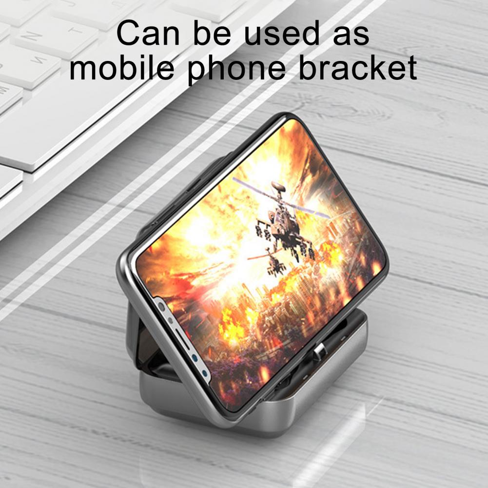 Эти bluetooth-наушники имеют зарядный чехол, который может использоваться для продления срока службы аккумулятора наушников, может использоваться в качестве зарядного устройства, а также может использоваться в качестве подставки для телефона.
