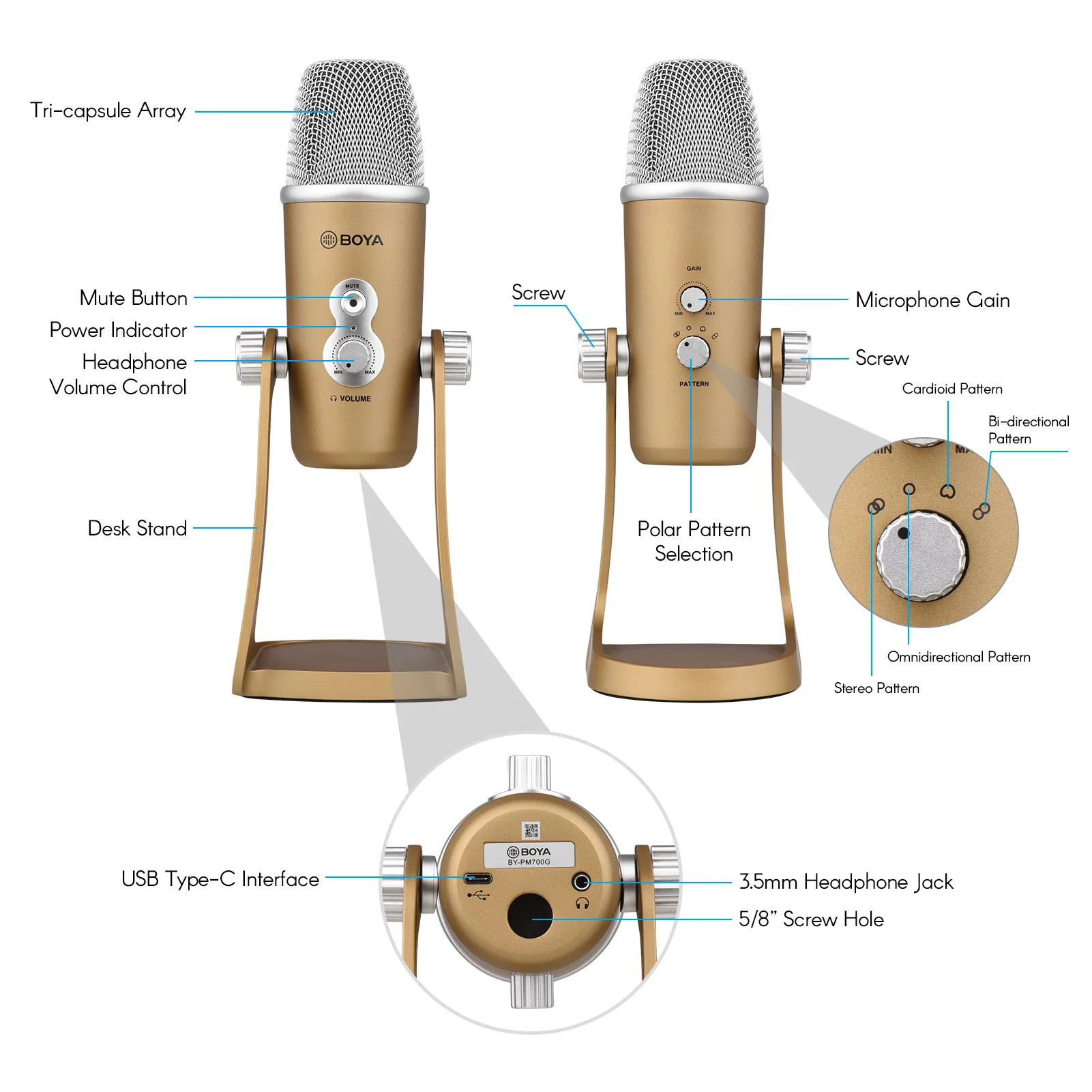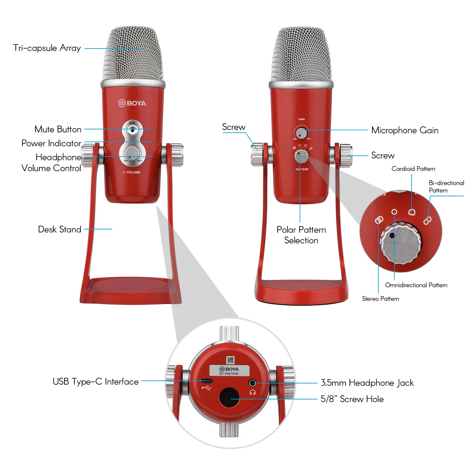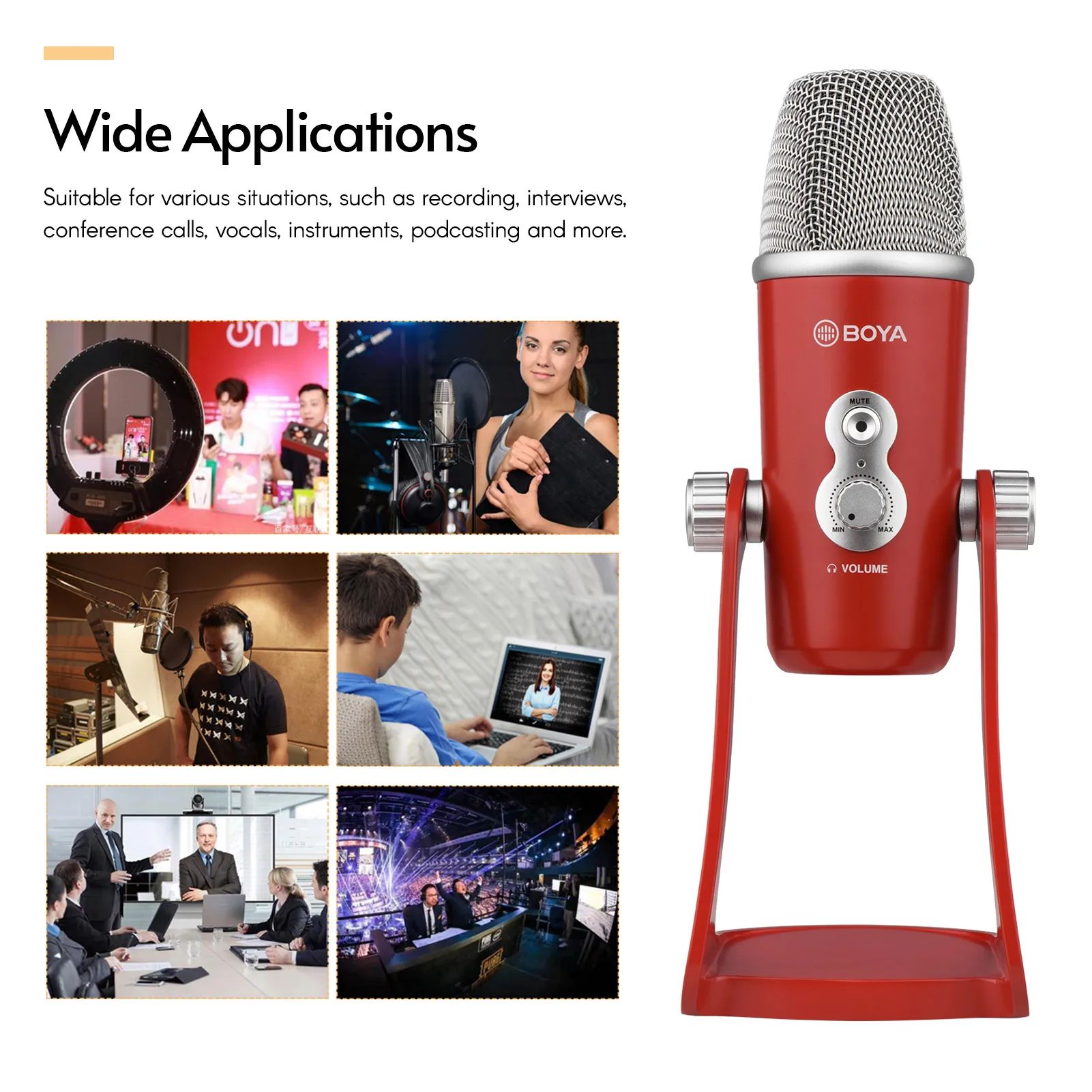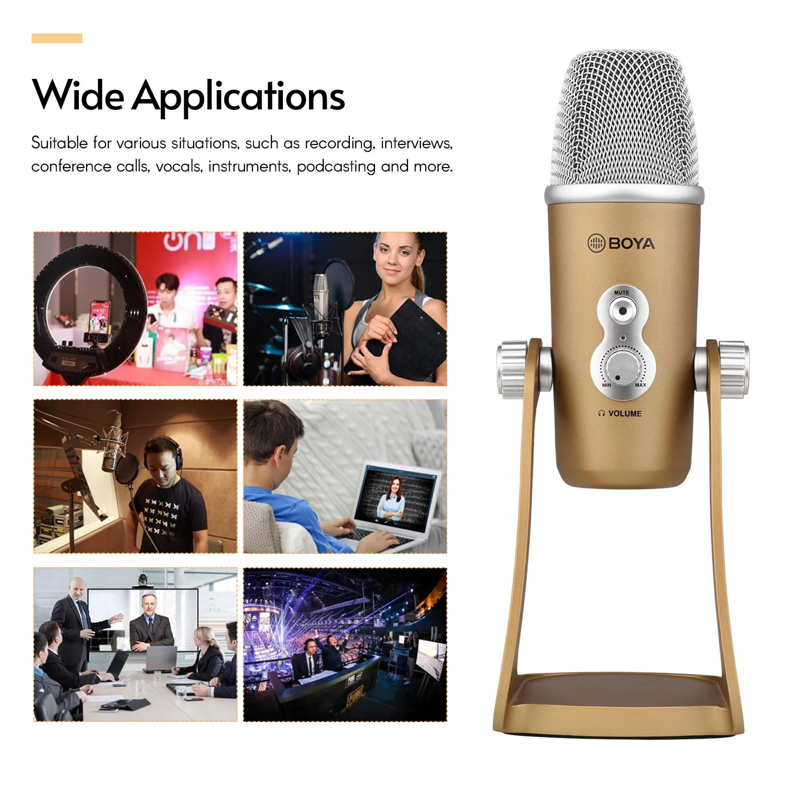 BOYA BY-PM700-это usb-конденсаторный микрофон, совместимый с компьютерами windows и mac. Микрофон предлагает стерео/всенаправленный/кардиоидный/Двунаправленный режимы пикап, и подходит для различных ситуаций, таких как запись, интервью, конференц-звонки, вокал, инструменты, подкачки и многое другое.