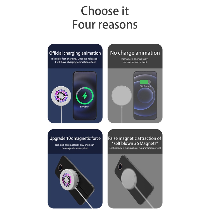 Быстрая зарядка PD, технология низкой температуры, улучшенный магнитный чип ice, быстрая безопасная зарядка 15 Вт.