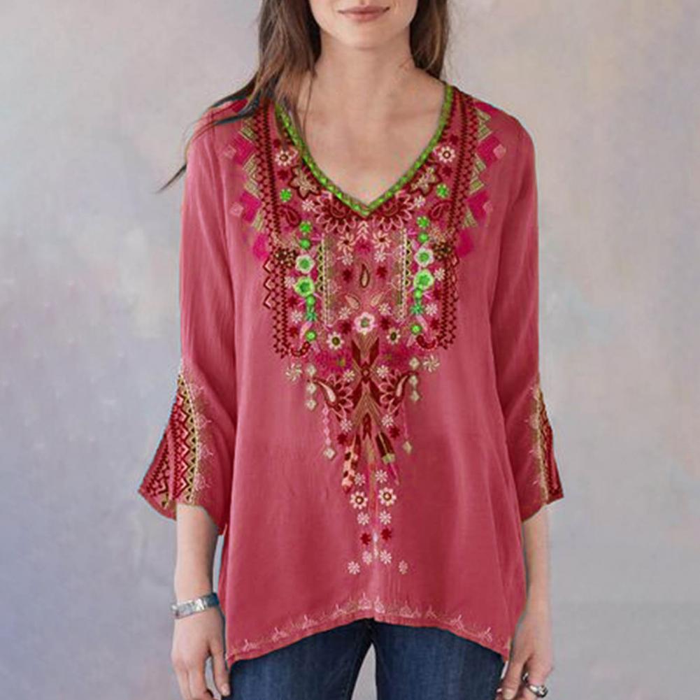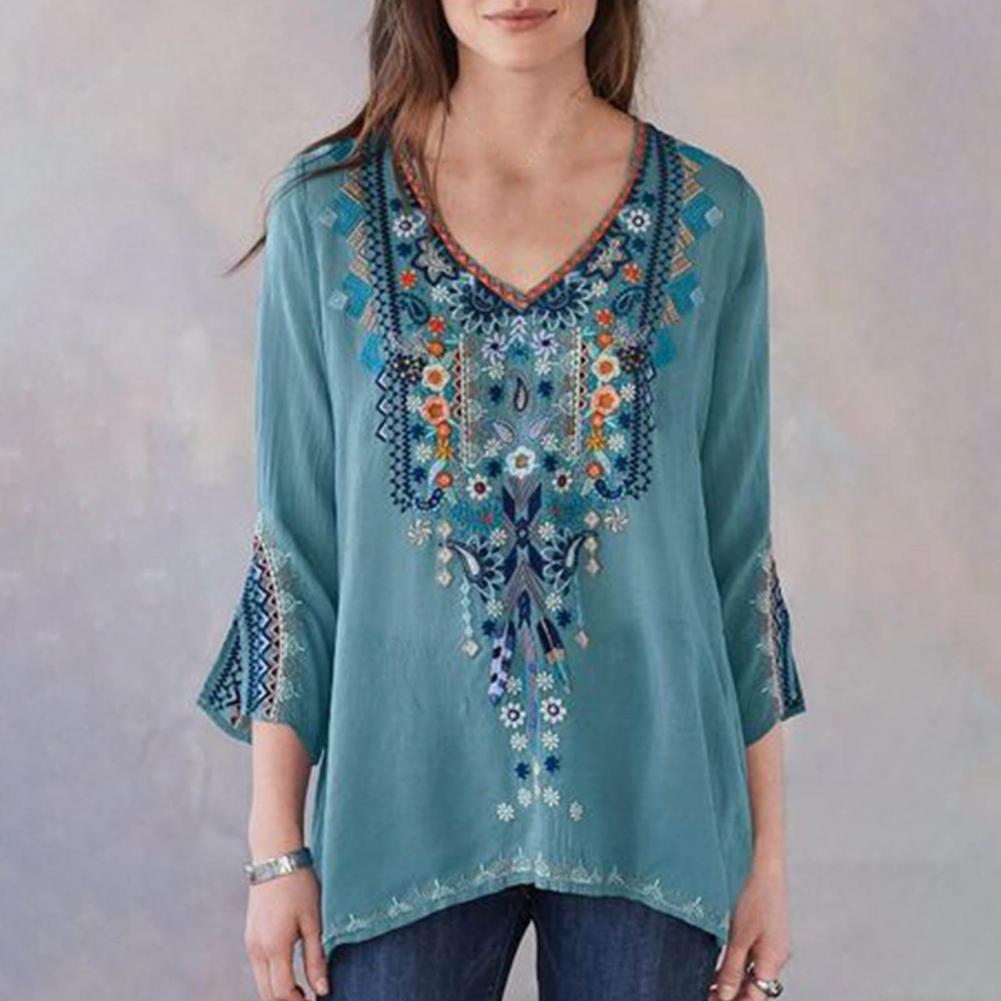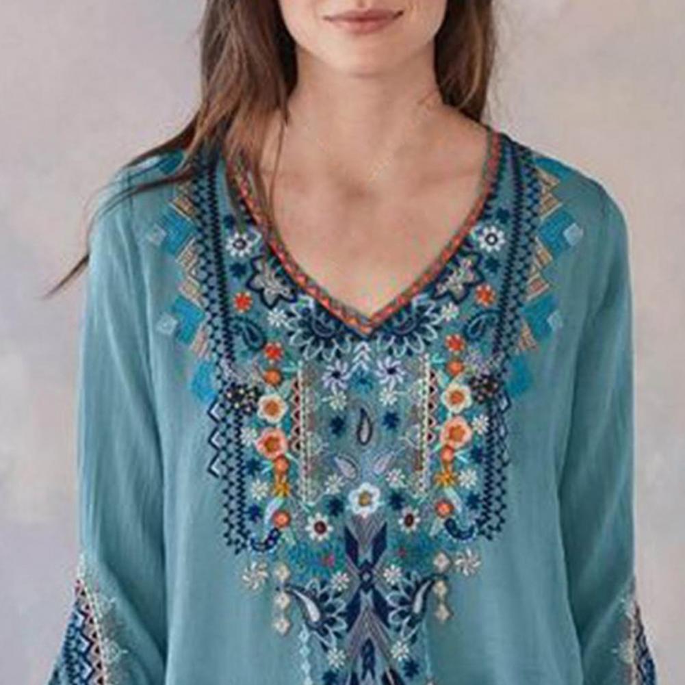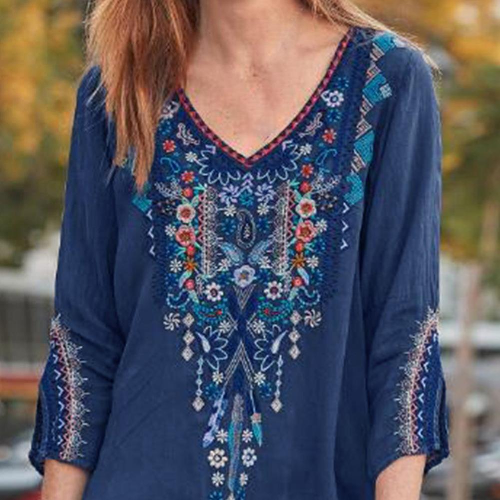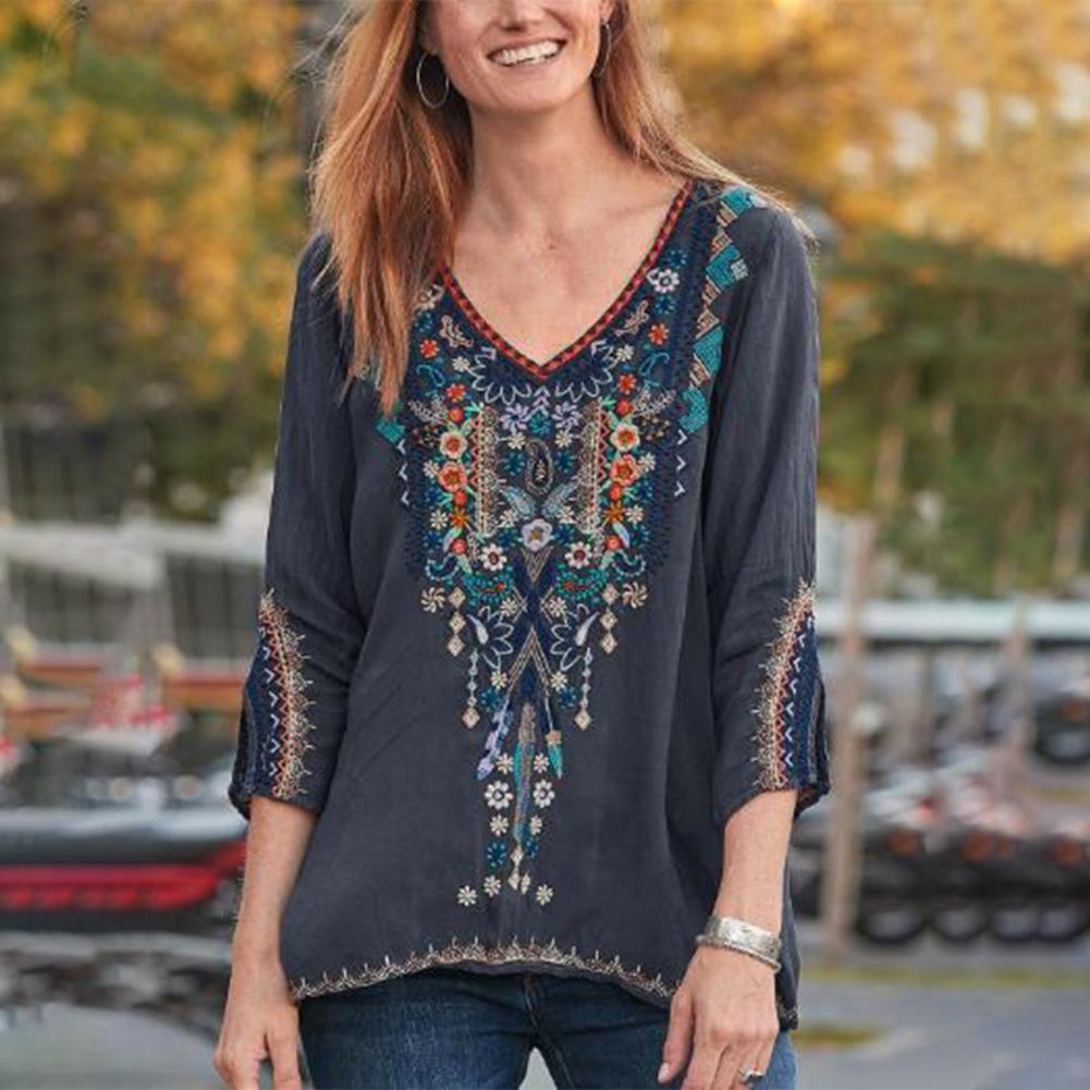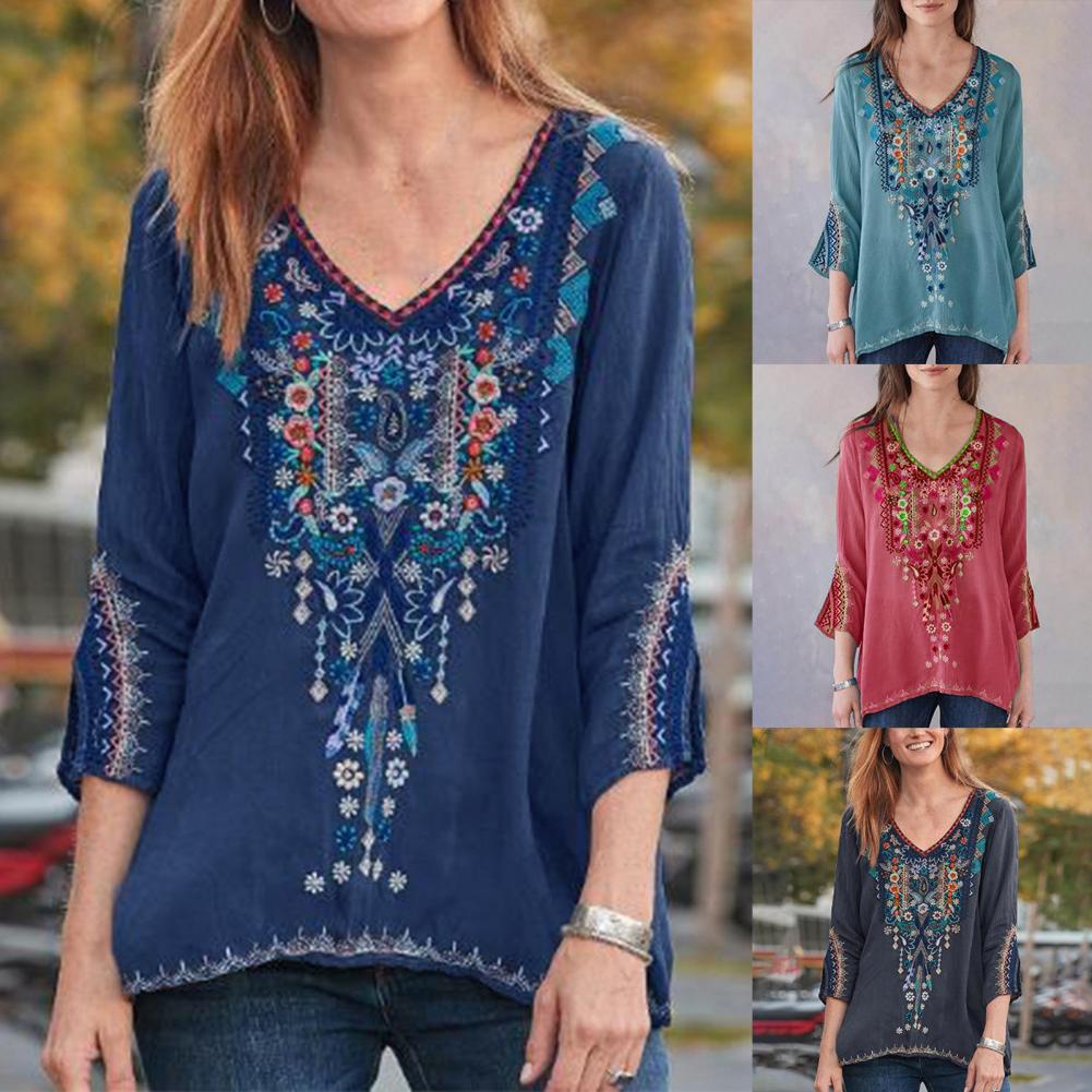 Бохо цветочные с вышивкой в мексиканском стиле Блузки Рубашки винтажная шикарная Осенняя блузка Этническая рубашка Хиппи Блузка