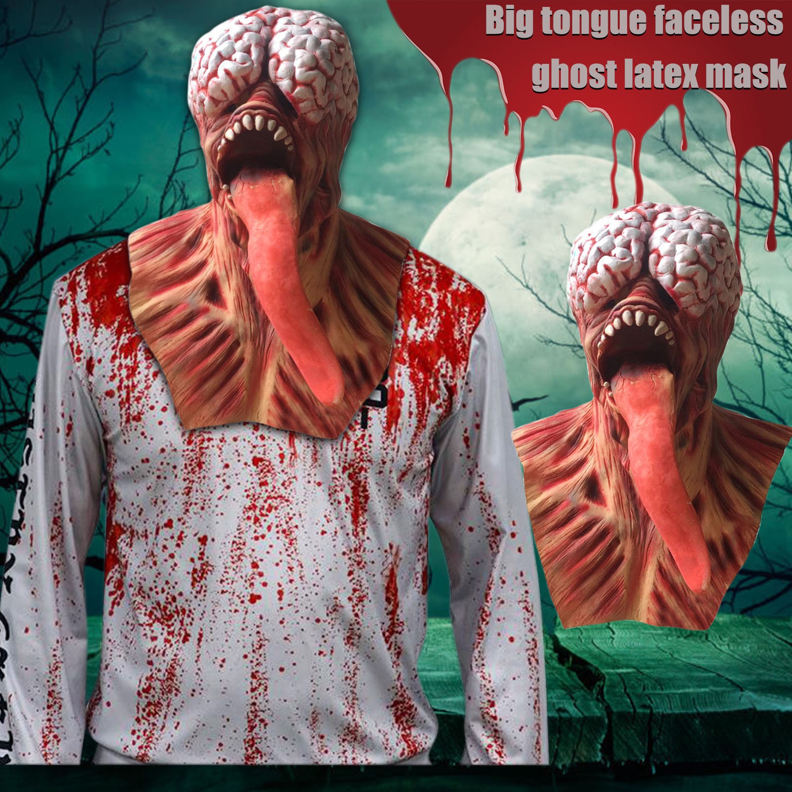 Страшное большое сердце большой длинный язык Безликий призрак латексная маска