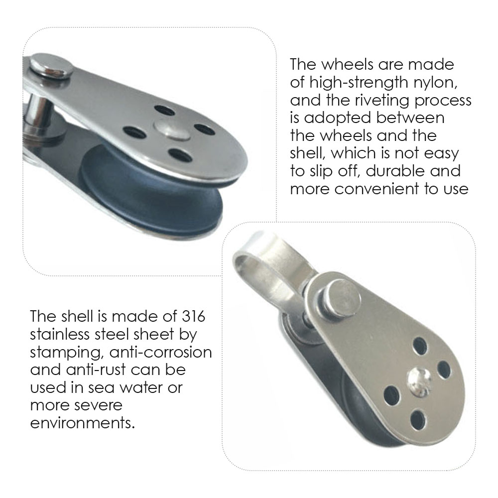 4. Сверхмощные и высокопрочные морские мини-шкивы из нержавеющей стали 316 с нейлоновыми колесами 25 мм