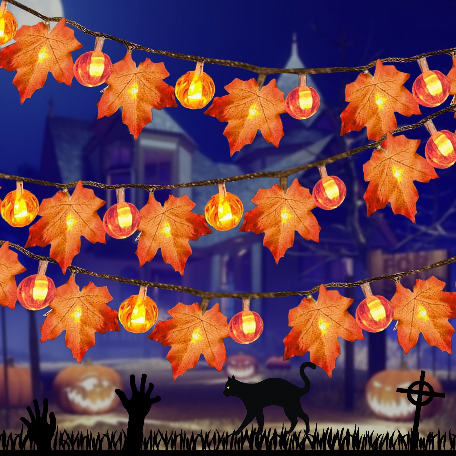 Светодиодный фонарь в виде кленовой тыквы; Гирлянда для сада на Хэллоуин; Вечерние украшения для комнаты