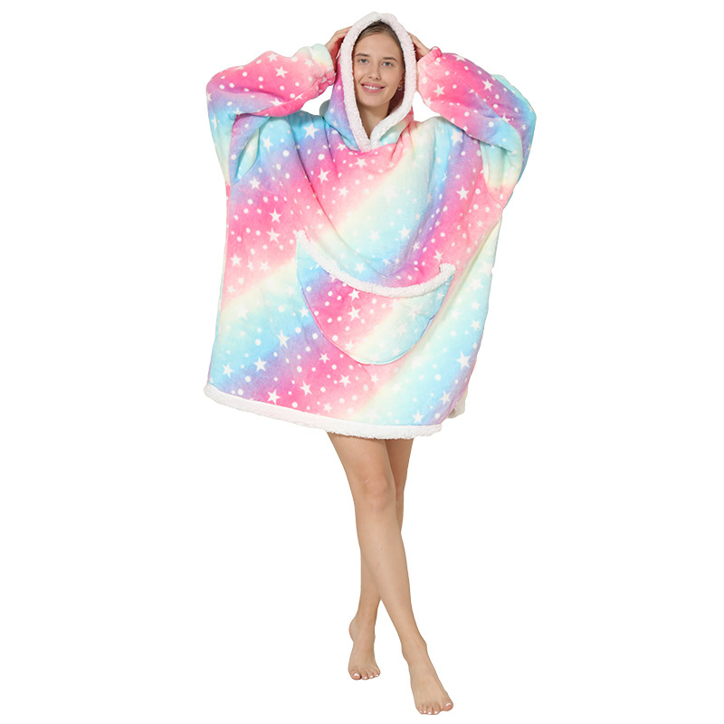 Зимние уличные одеяла с капюшоном и карманами, теплая мягкая толстовка с капюшоном, халат, халат, свитер, пуловер, ТВ, Флисовое одеяло с рукавами