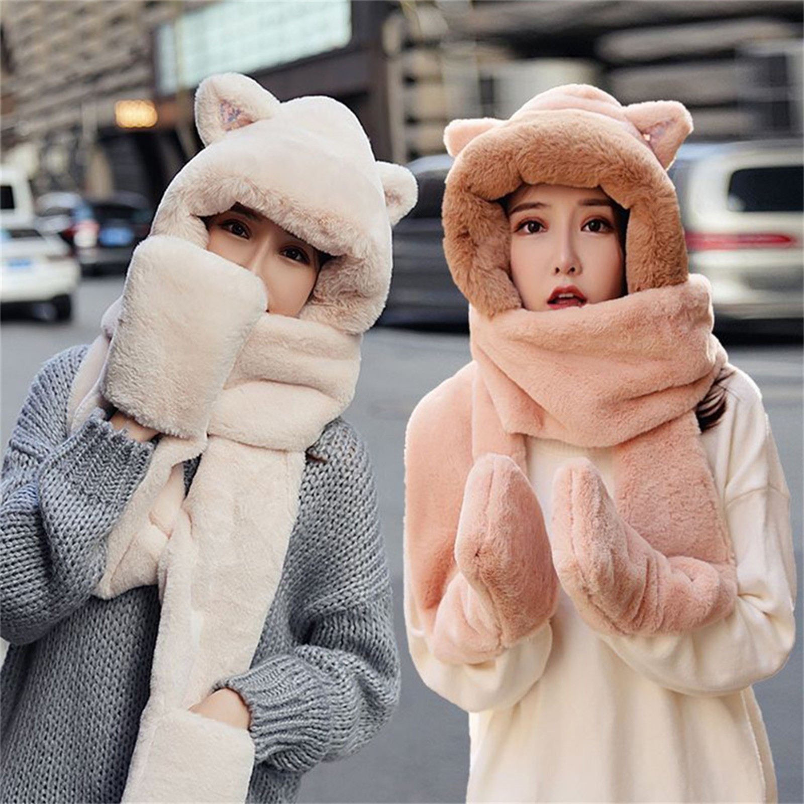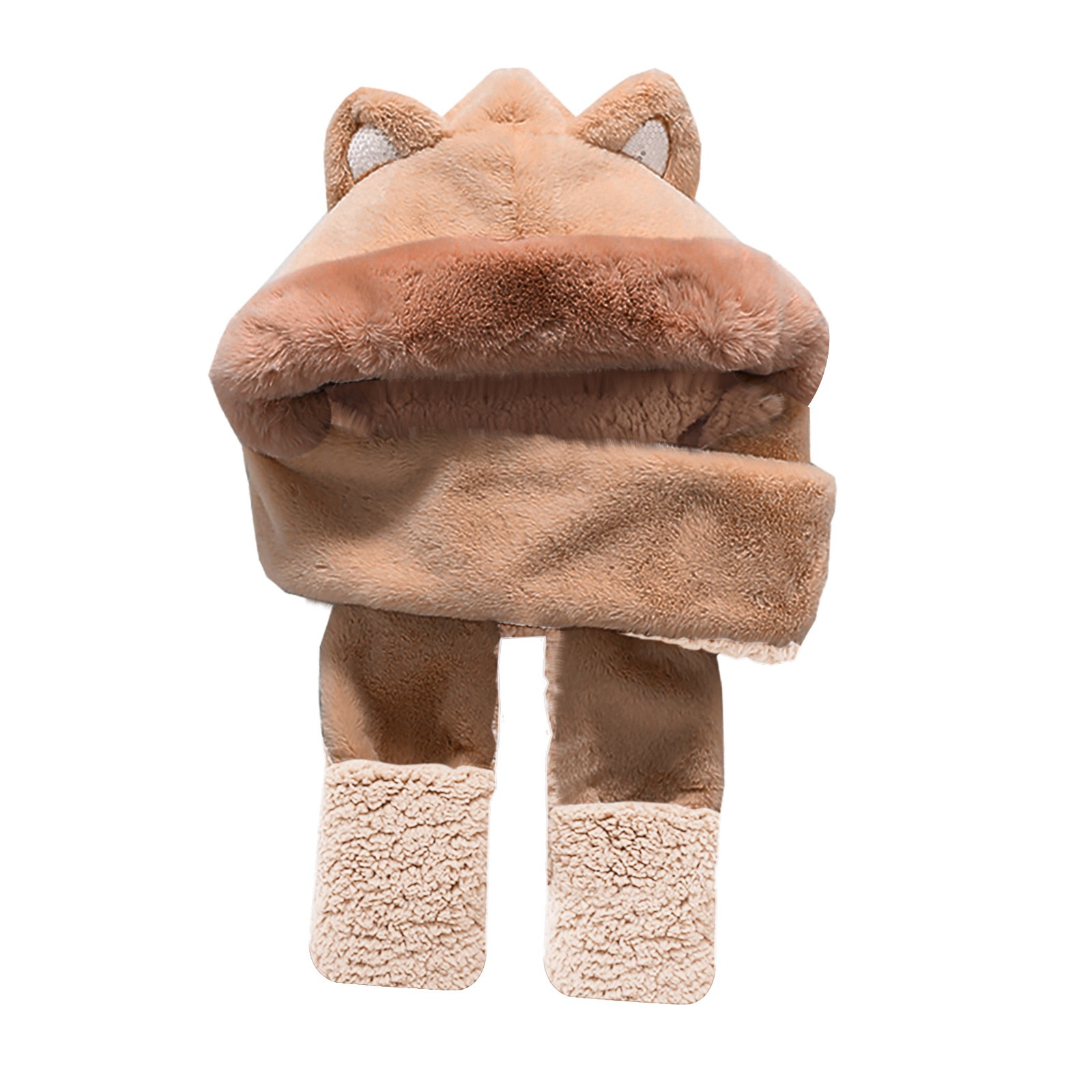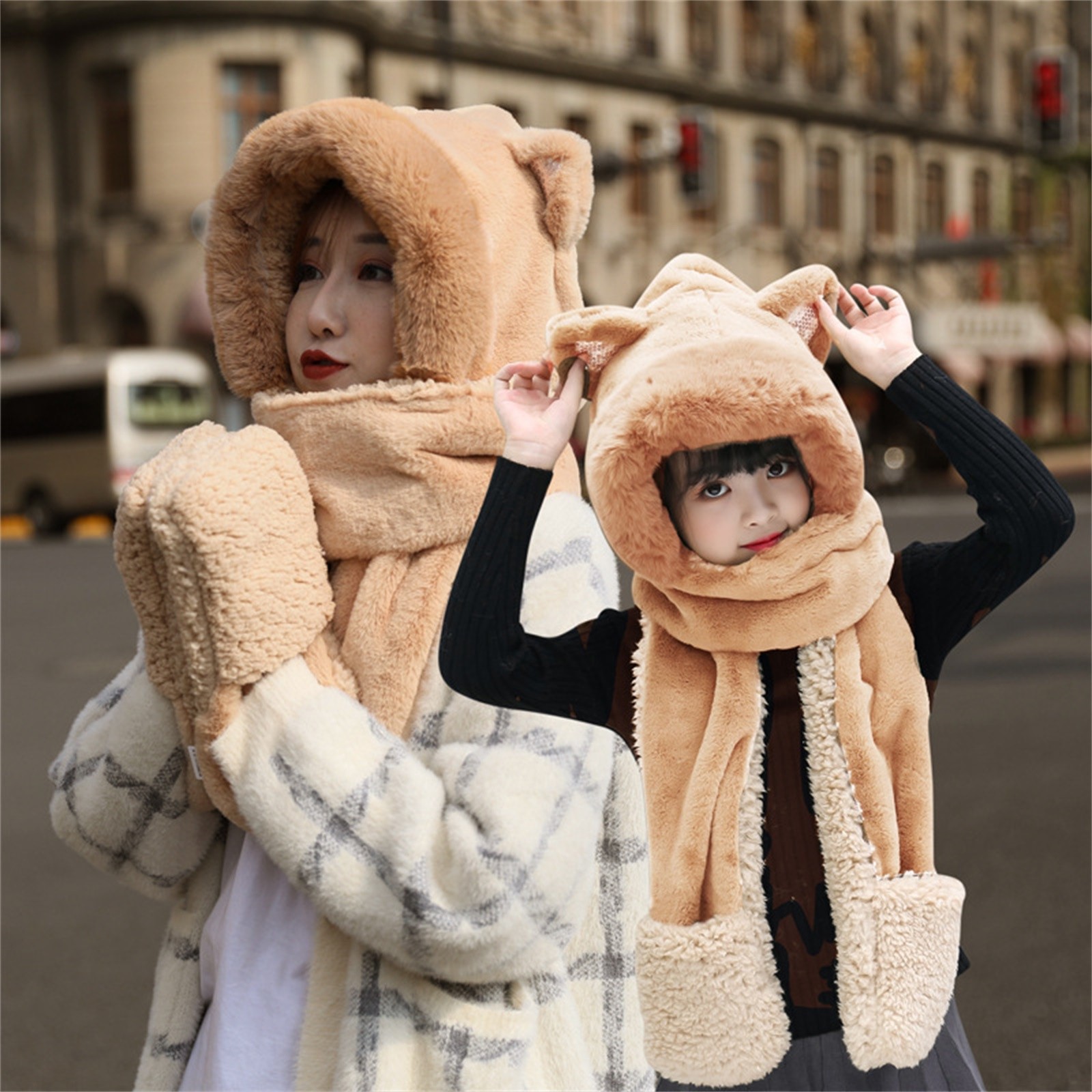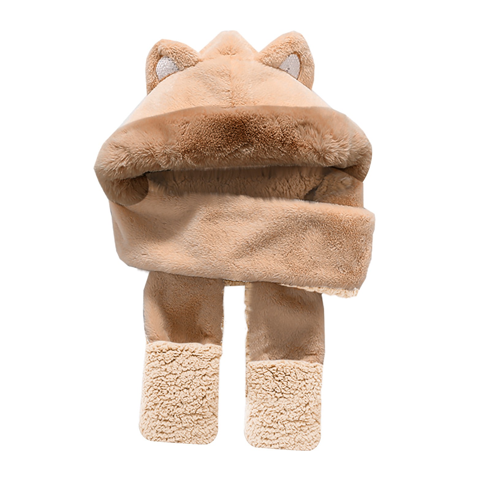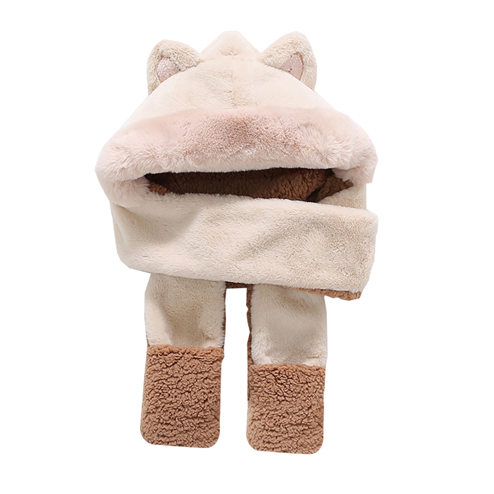 Комплект: 3 в 1; Милые зимние утепленные шапки с капюшоном и ушками животных