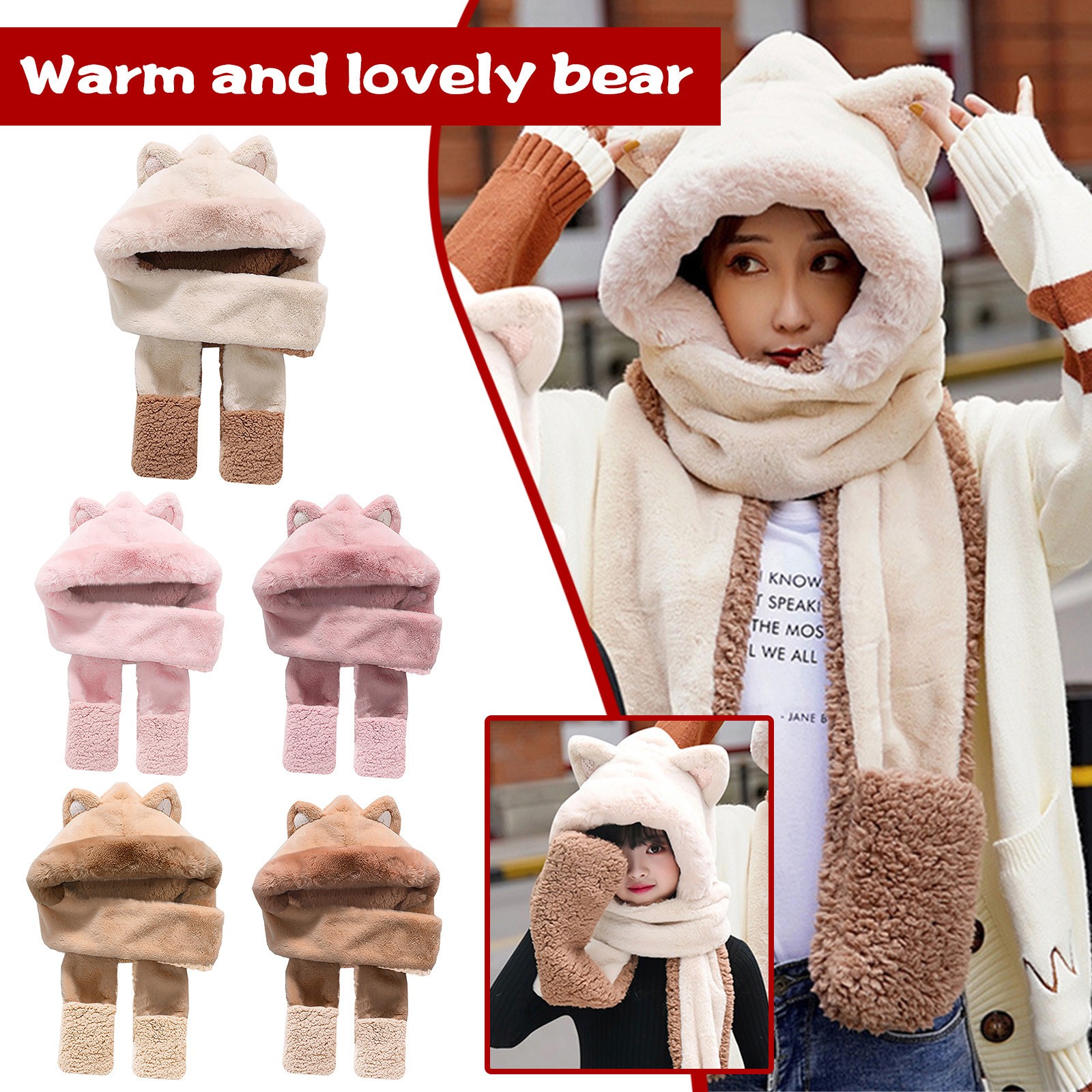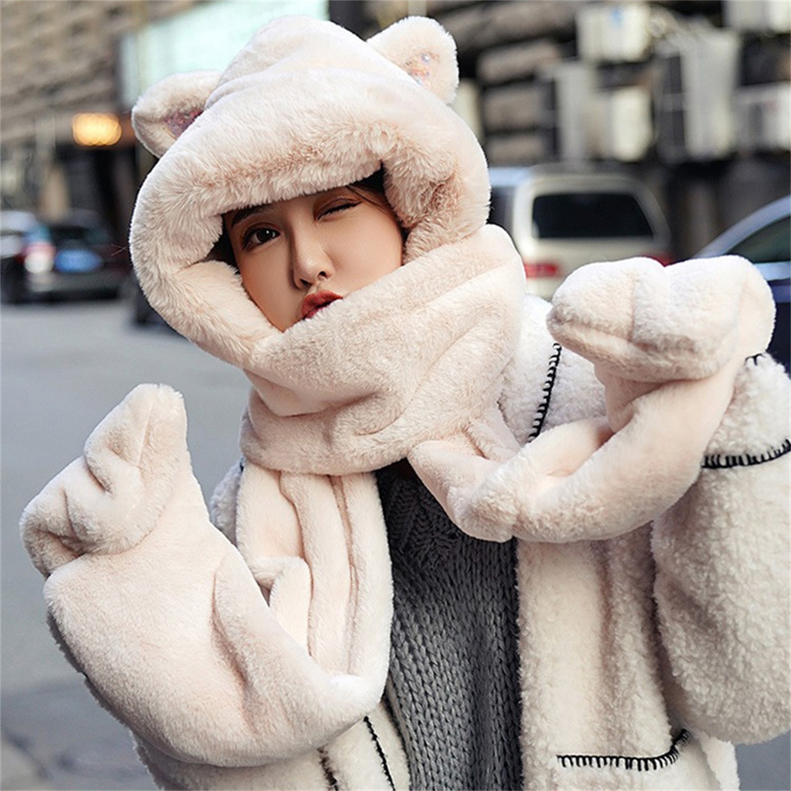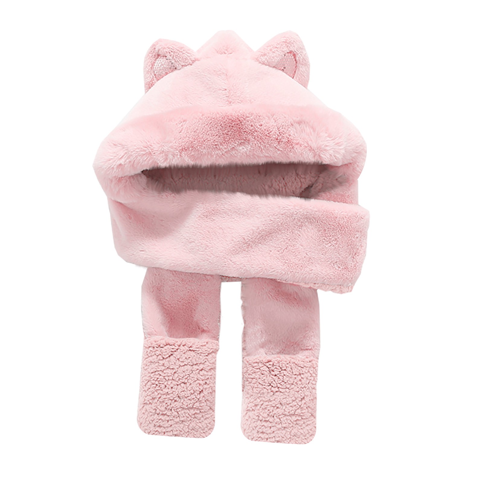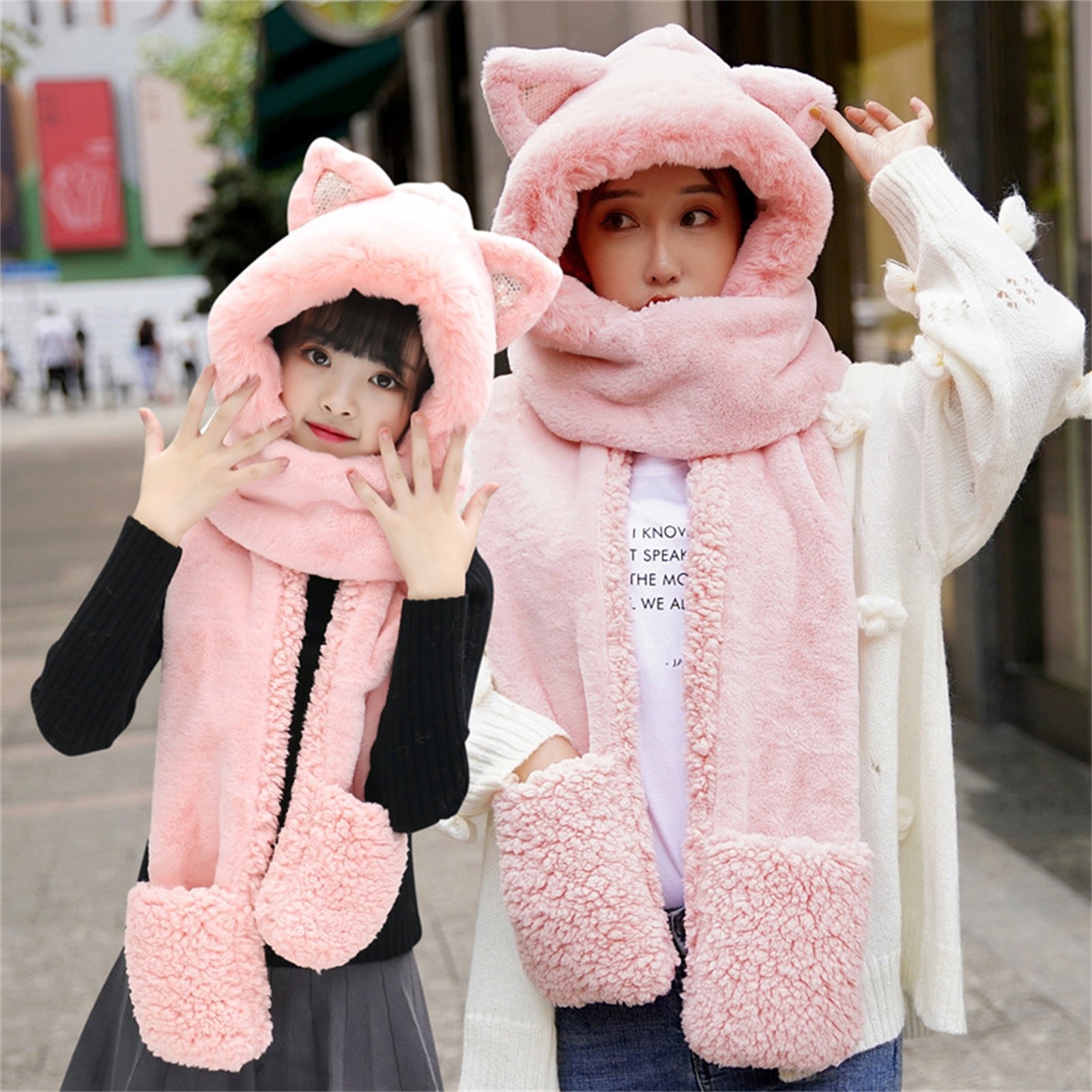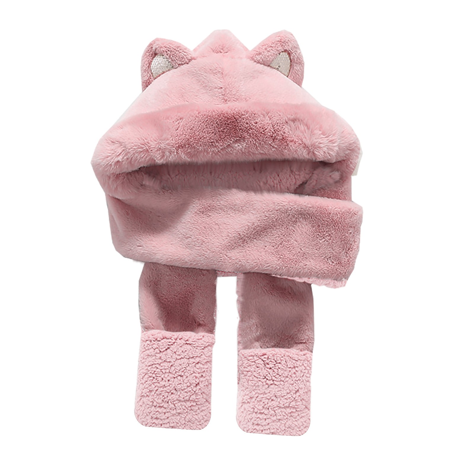 Комплект: 3 в 1; Милые зимние утепленные шапки с капюшоном и ушками животных