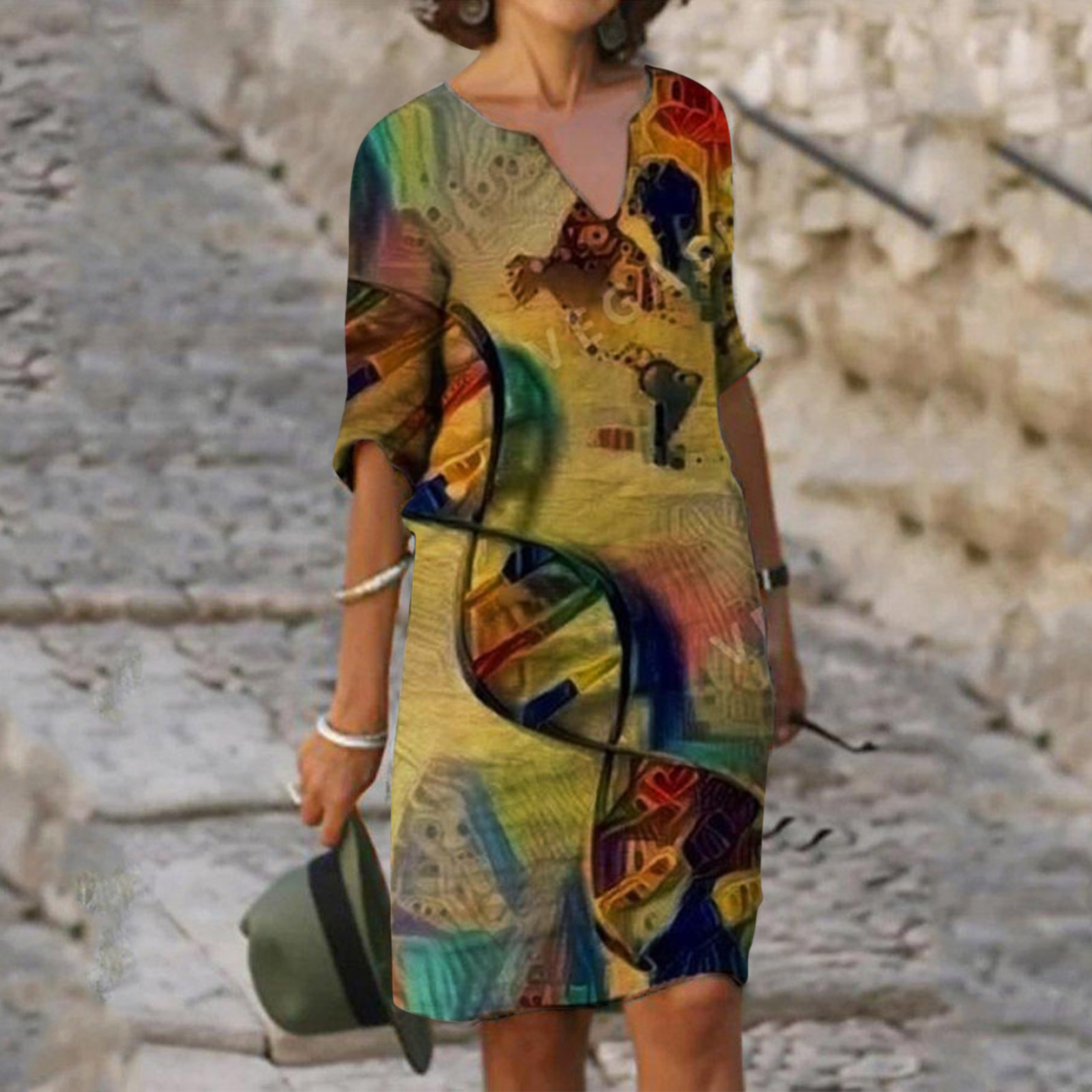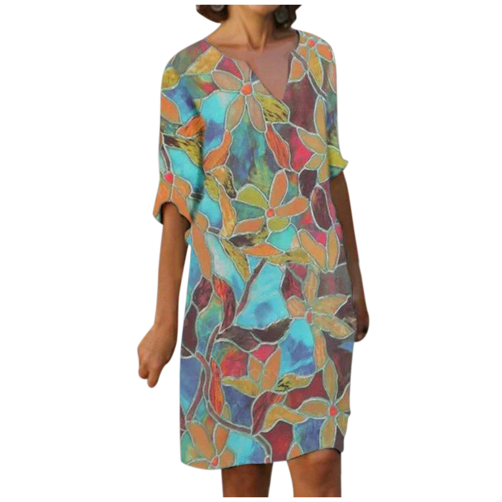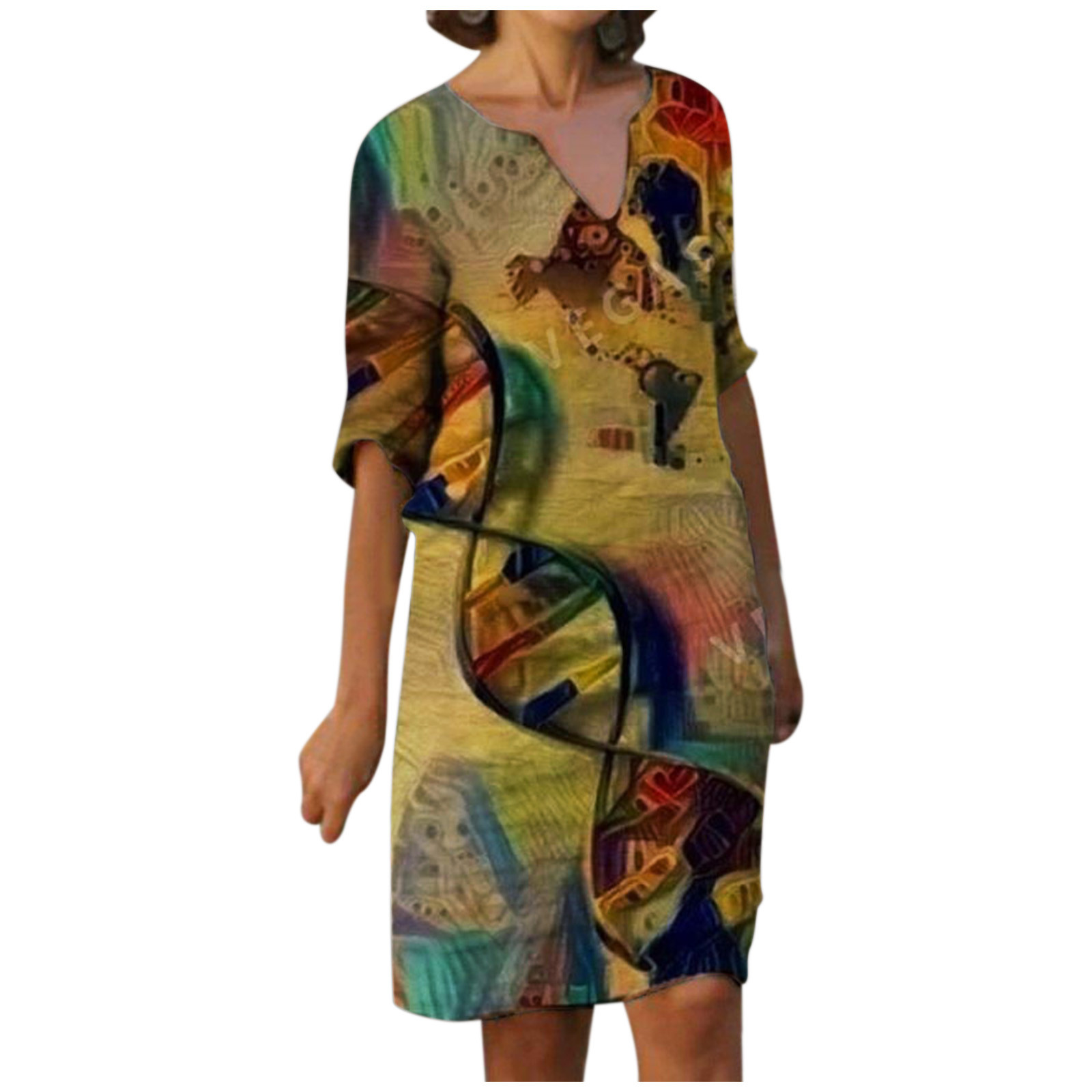 Женское летнее сексуальное Повседневное платье с v-образным вырезом, Пляжное платье с коротким рукавом