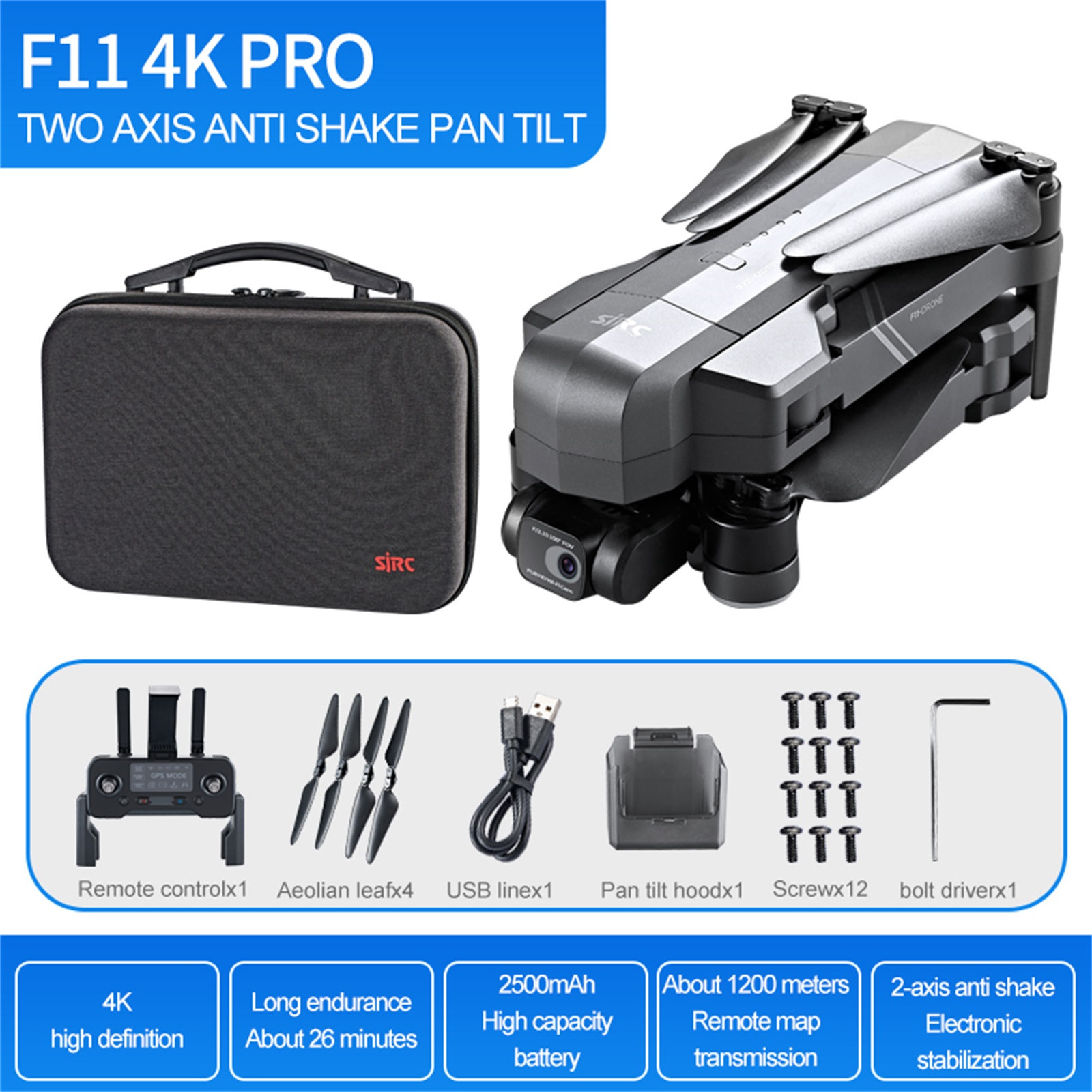 -Настоящий 4K со сверхвысоким разрешением Ultra HD, Камера с 2-гидростабилизатору и электронное изображение Технология стабилизации: EIS является высокоэффективным методом Компенсирующая дрожание рук проявляет себя в отвлекающем видео-встряхивании Во время воспроизведения. Оборудованный сочетает в себе светильник Уайт 2-осевой механический Gimbal с новейшими профессиональными алгоритмами управления. Убедитесь, что Камеры дрона обеспечивают высокое качество, уменьшая размытие, вызванное Вибрация в полете -5G передача FPV и регулируемый объектив 90 ° позволяют видеть слово Под разным углом. -GPS вспомогательный Интеллектуальный полет: никогда не теряйте Дрон. Он возвращается Автоматически, когда батарея низкая, сигнал теряется или вы нажимаете один Возврат ключа. Кроме того, это так умно летать по вашему желанию, следуя за вами Автоматически, летит вдольPA-TH Вы устанавливаете или летите по кругу. Вы можете сфокусироваться на Фотография и создание. -Обновление конфигурации: Интеллектуальный аккумулятор работает 25 минут для Каждый заряд; Долговечные бесщеточные двигатели имеют меньшее энергопотребление И дать вам более тихий полет -Складная конструкция и хорошо подходящий чехол для переноски позволяют легко взять Дрон на открытом воздухе. -Простота в эксплуатации: оснащенные несколькими датчиками гарантируют превосходное парение Стабильность и высокое качество фотографии, сделанные под разными летящими условиями -Оптическое позиционирование потока делает большой эффект, когда gps-сигнал потерян или Слабый. Функции, такие как запуск/остановка одной кнопкой, Аварийная остановка, удержание высоты И безопасный полет, держите его простым в управлении даже новичкам. -Полет в точку: спланируйте свой Летающий маршрут, рисуя точки на Встроенная карта в приложении, запись красивых пейзажей по маршруту. Кроме того, режим GPS предоставит вам точную информацию о позиционировании Дрон. -Интерес: Выберите здание или место и нажмите на него Карта приложения. Дрон может продолжать летать по часовой стрелке вокруг этого Конкретное здание или место, представляя комплексное изображение. -Следуйте за мной: независимо от того, как быстро вы бегаете. The F11S Pro 4K follow me Функция покрыта вами. Легко получить профессиональные изображения. -GPS возврат домой: он всегда будет возвращаться автоматически, когда Батарея низкая, сигнал теряется или вы нажимаете кнопку возврата.Параметры