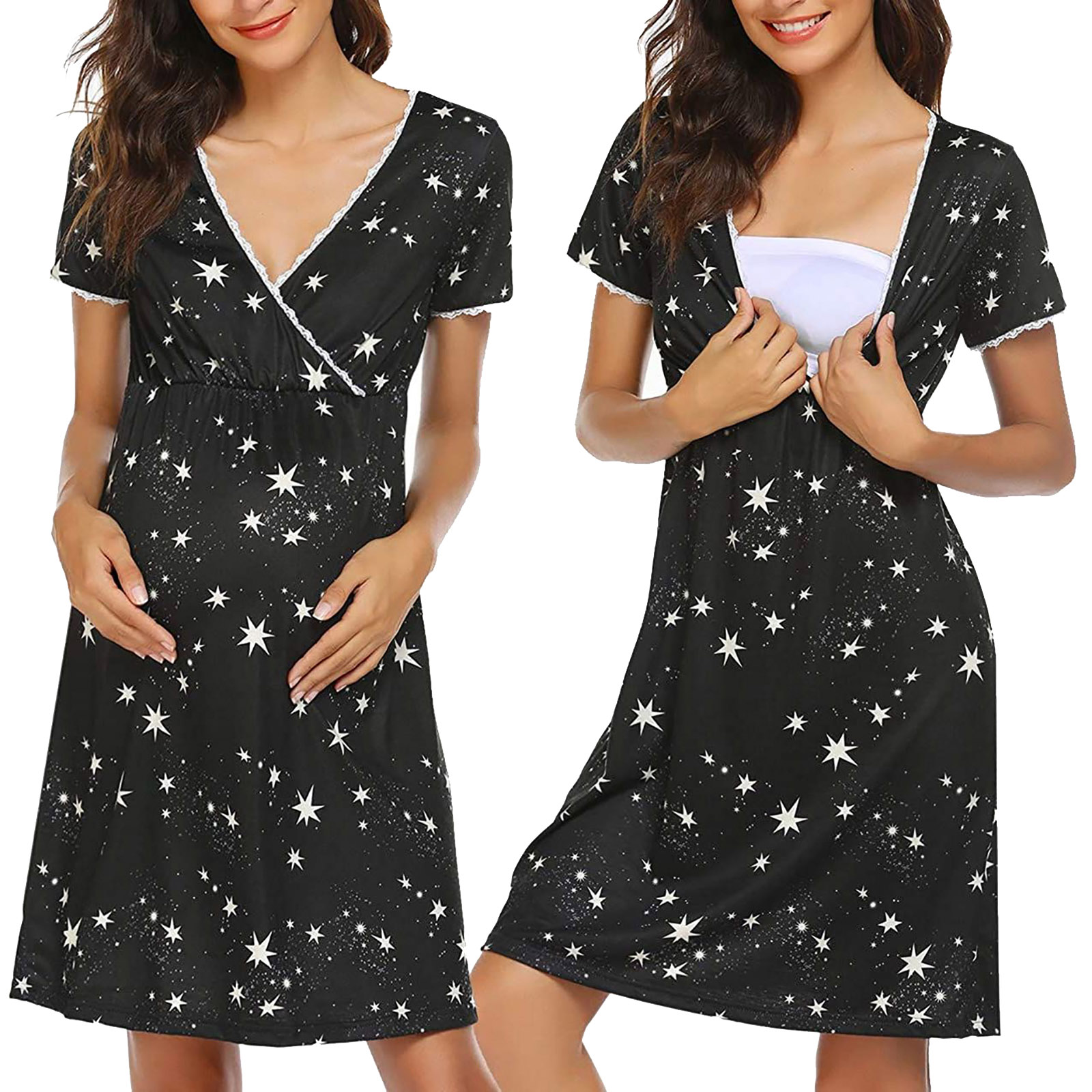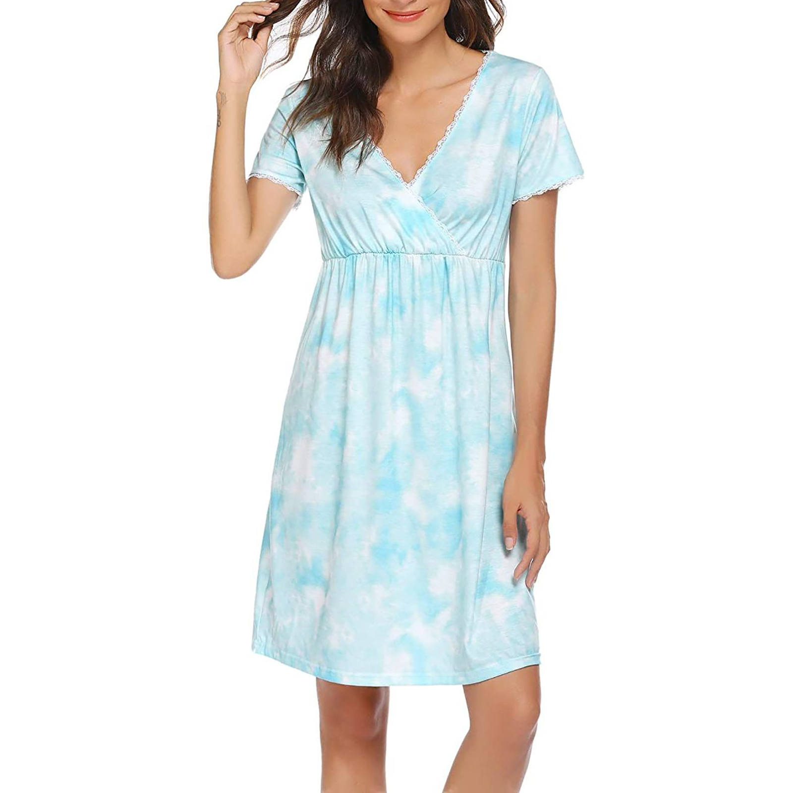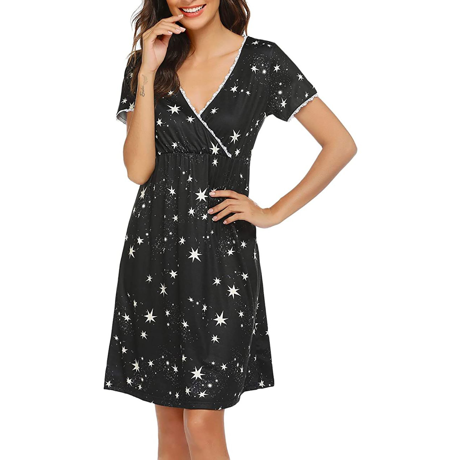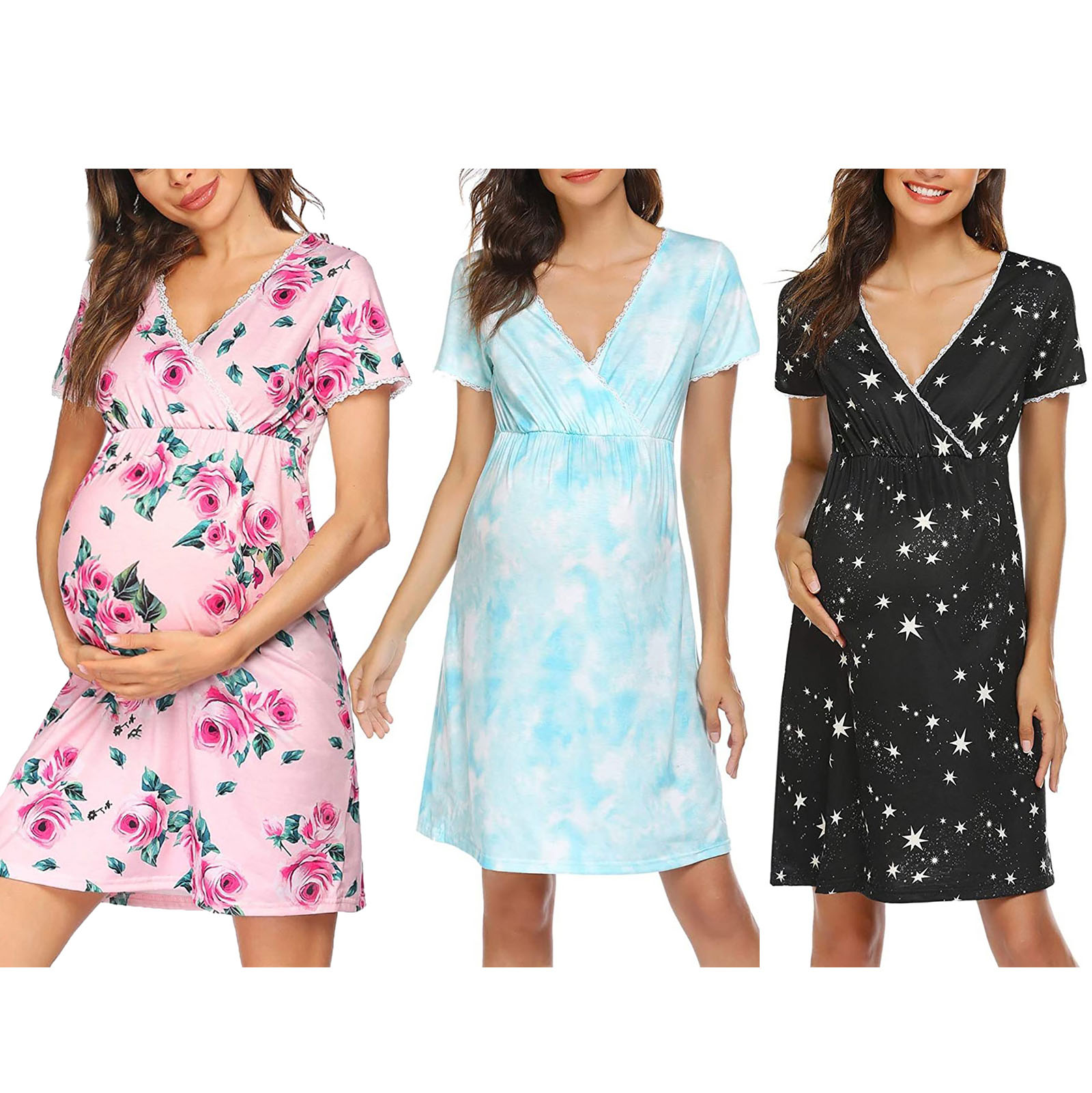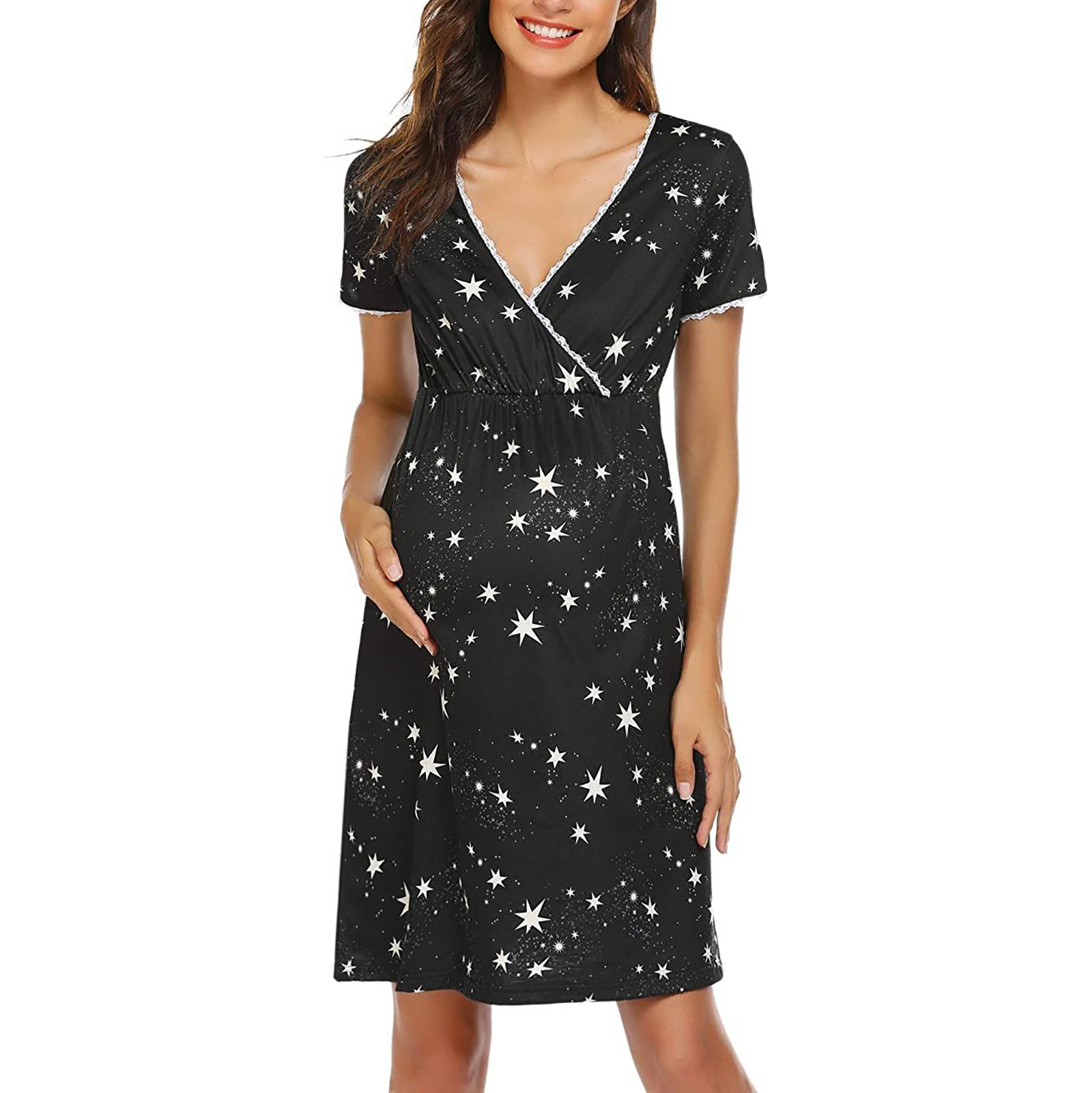 Одежда для беременных женщин; Платье длиной до колена с коротким рукавом и принтом крест-накрест спереди для кормления грудью.