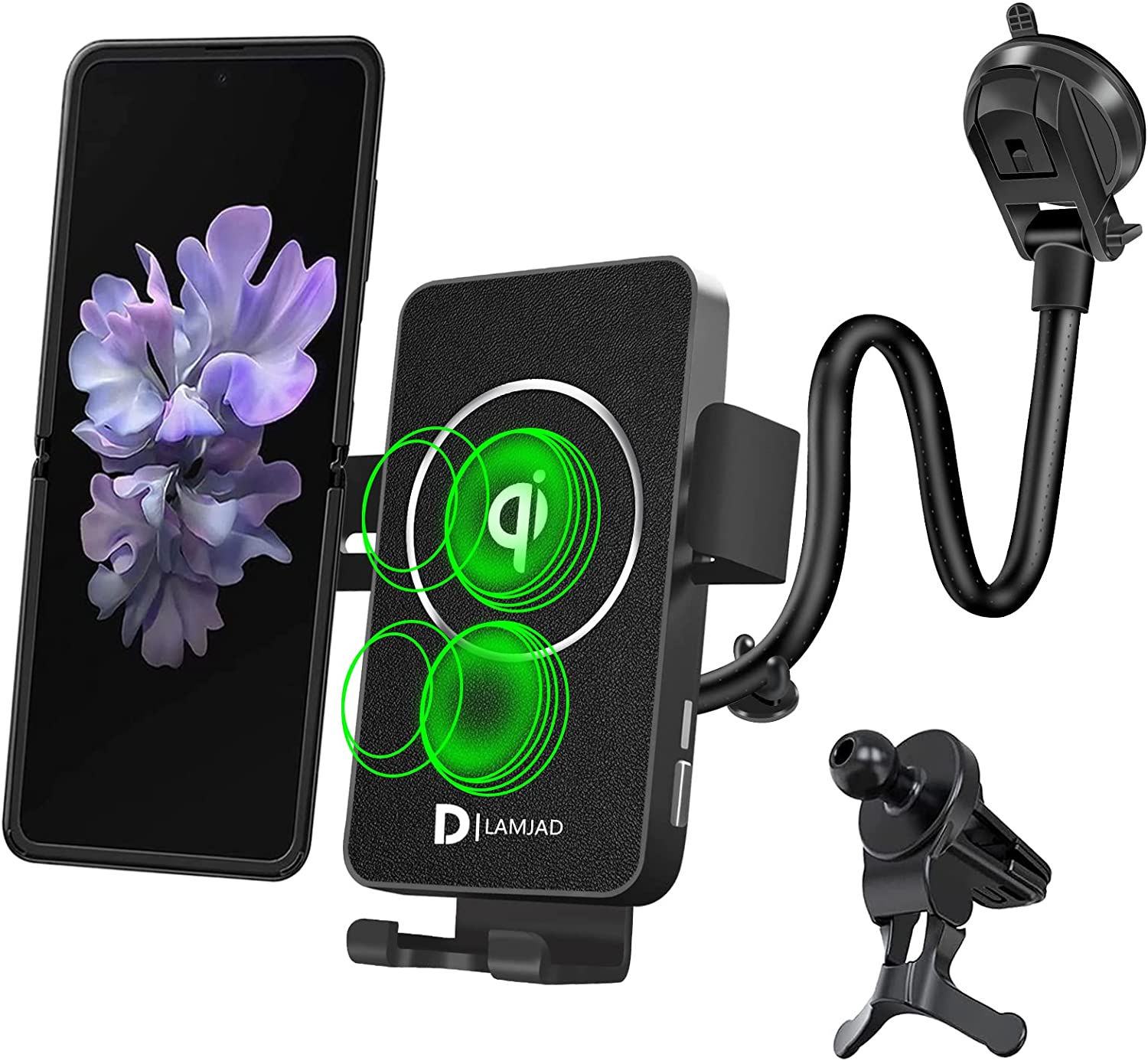 >>2-IN-1 Design: Combines the Qi Wireless Charger and a car cell phone holder, allows for a secure hands-free experience. Keep you away from the tangled locating cords or cables. Cell phone holder is suitable for car Windshield Dashboard Air Vent installation, and makes GPS and phone call more convenient.