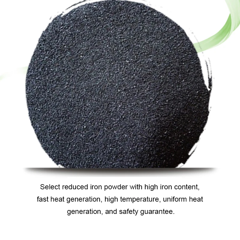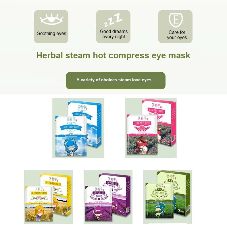 * Принцип нагрева:Паровая маска для глаз содержит нагревательный элемент, содержащий железный порошок и воду. После открытия упаковочного мешка фермент в воздухе касается нагревательного элемента, а железный порошок в нагревательном элементе начинает ферментировать и генерировать тепло. Влага, содержащаяся в нагревательном элементе, испаряет это тепло, а затем создает комфортный пар.