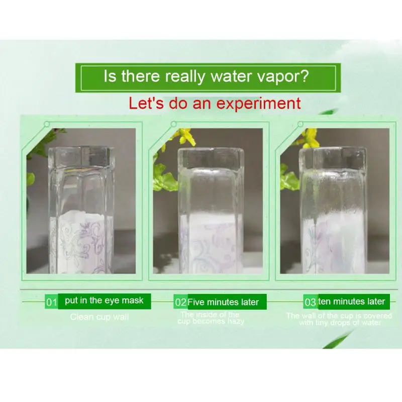 * Водяной пар экспериментальный тестовый: посмотрите, действительно ли маска для глаз производит пар. Если нет водяного пара, чистый сухой пар не только увлажнит область вокруг глаз, но и повредит кожу глаз.