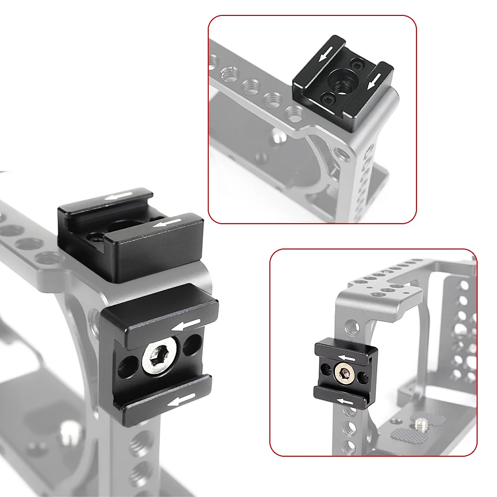 Можно использовать для клетки, блока холодной обуви и так далее. 5 ниток, крепится к любому аксессуару камеры. Это создает платформу для крепления светильников корпуса камеры, ручек обуви, микрофонов и т. д. аксессуар поставляется с двумя надежными гибочными скобами в одном конце, чтобы предотвратить случайное удаление. Мы специально предоставляем две белые стрелки на поверхности, чтобы показать вам, как установить их для вашего удобства.