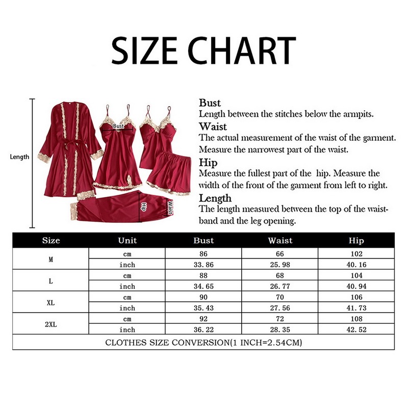 Особенности: женская одежда для сна из 5 предметов; Женский пижамный комплект; Атласная пикантная кружевная одежда в стиле пэчворк для свадьбы; Домашняя одежда; Халат; Костюм