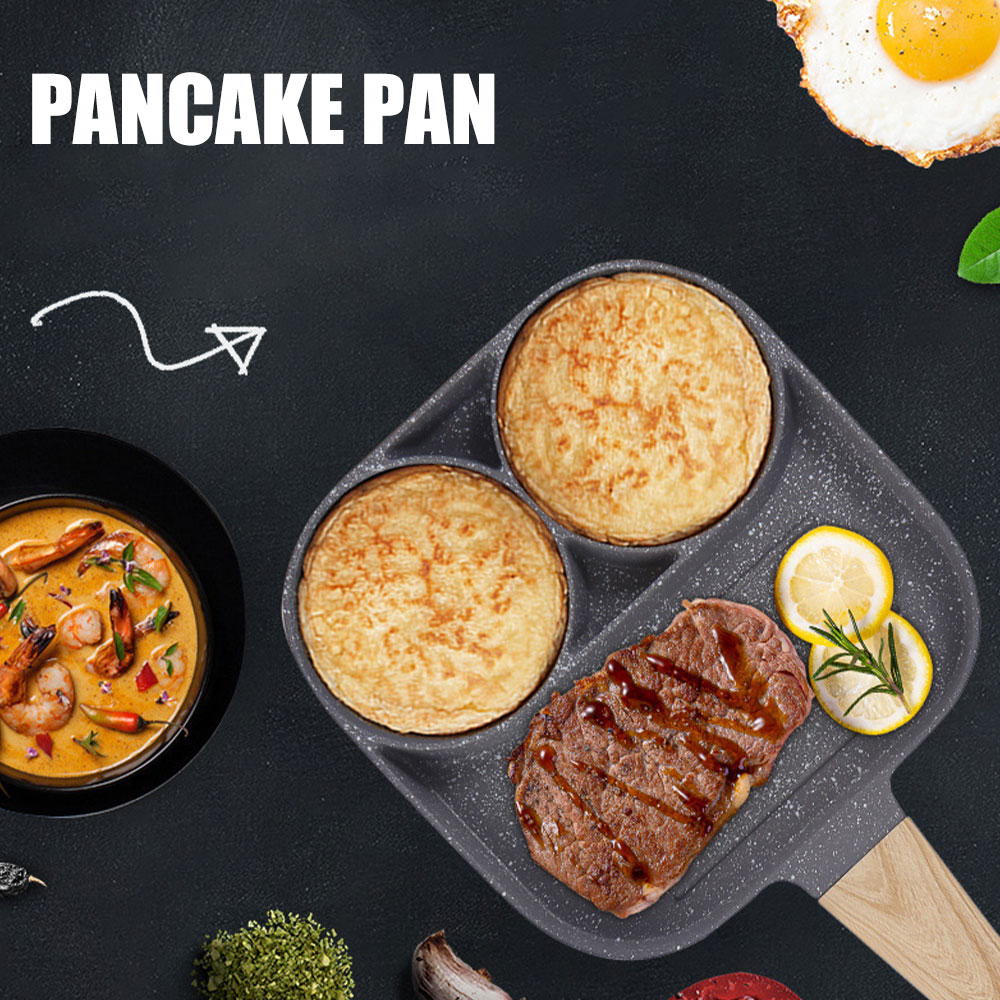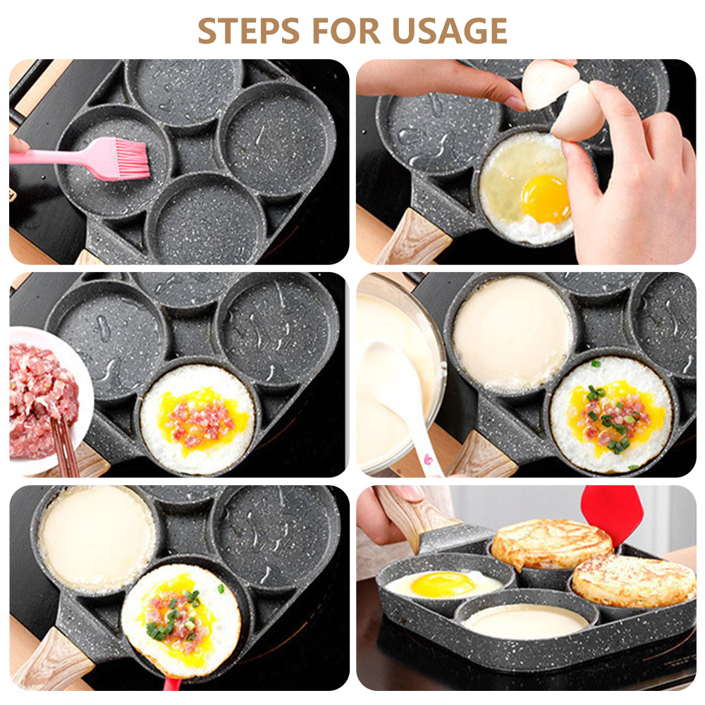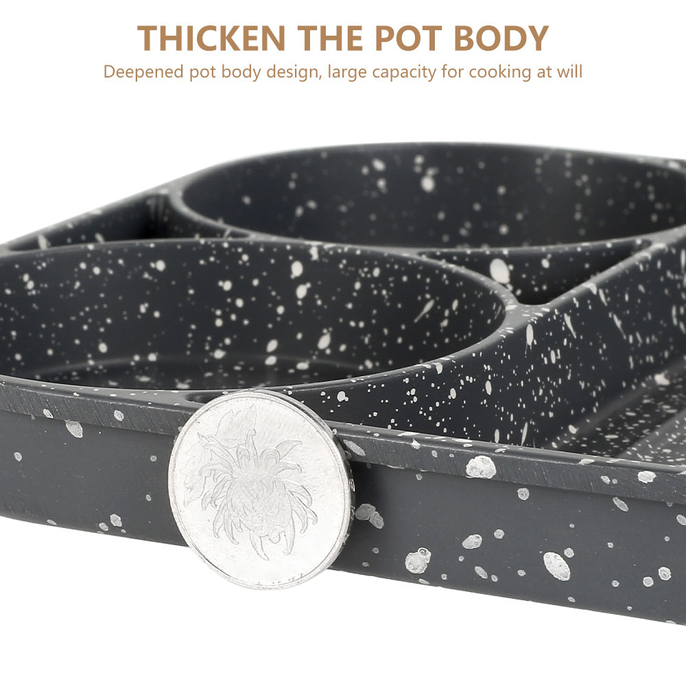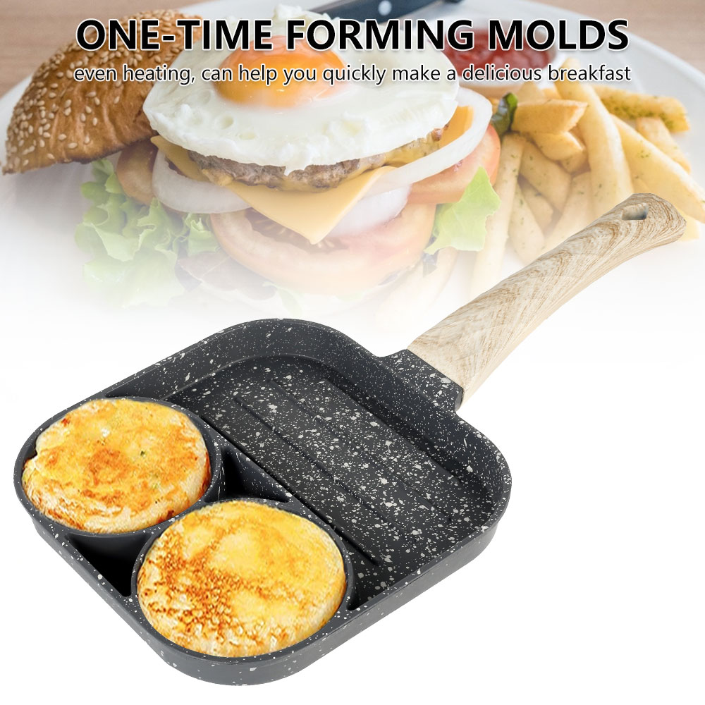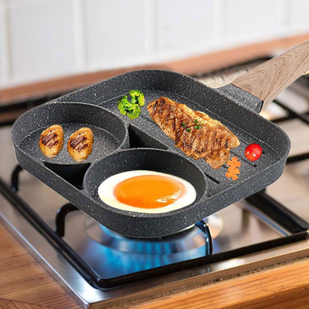 【Креативное деление 】Наш завтрак Сковорода для блинов имеет 2 вида стилей, 4-луночное, сковорода для омлета и 3 отделениями для хранения поддона. Первый имеет 4 отделения. Последняя имеет 2 отверстия сковорода для омлета и большую квадратную полость, чтобы сделать приготовление пищи быстрым и легким.