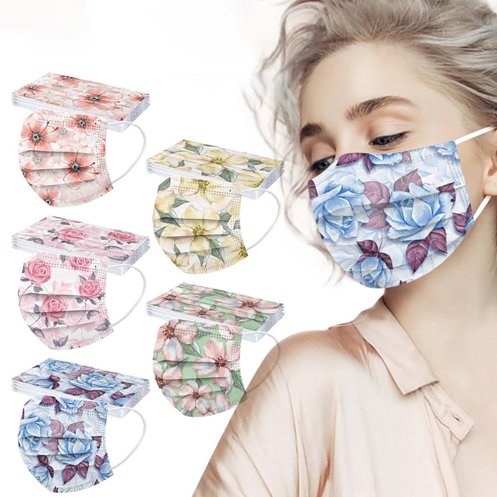 10 шт одноразовые маски для взрослых с цветочным принтом