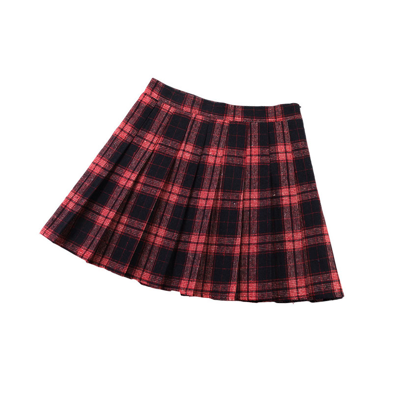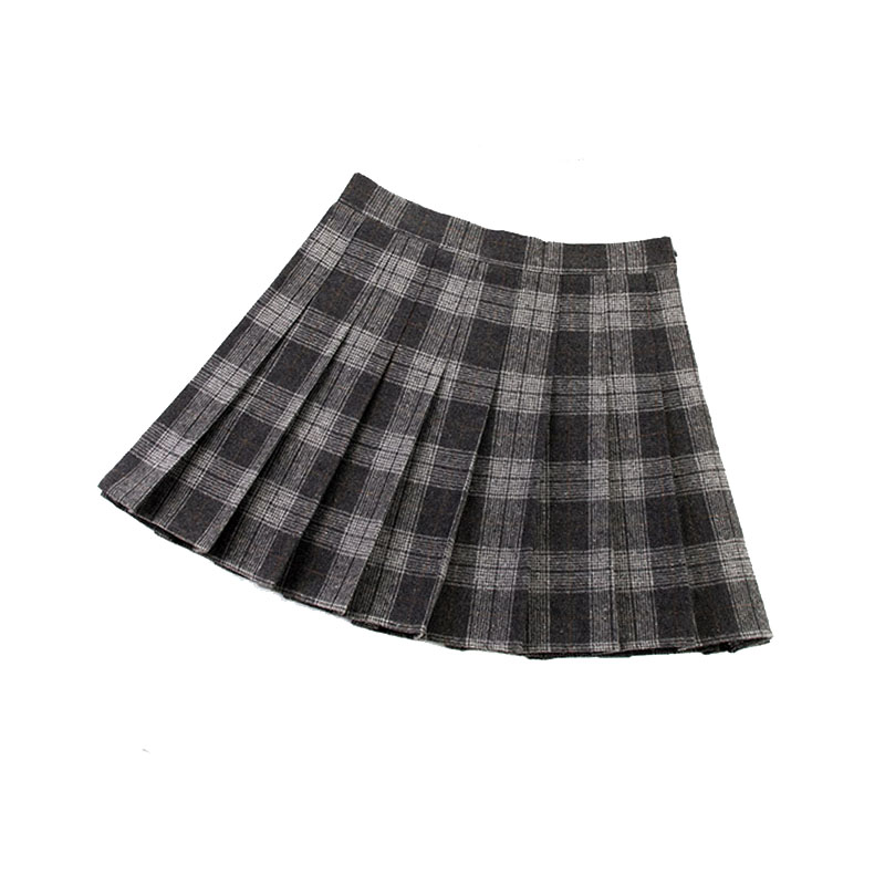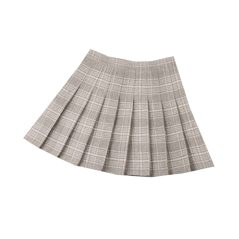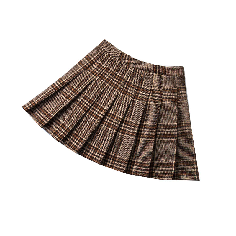 Шерстяные женские плиссированные юбки Harajuku, трапециевидная Женская клетчатая юбка с высокой талией, осенне-зимние теплые мини-юбки для танцев